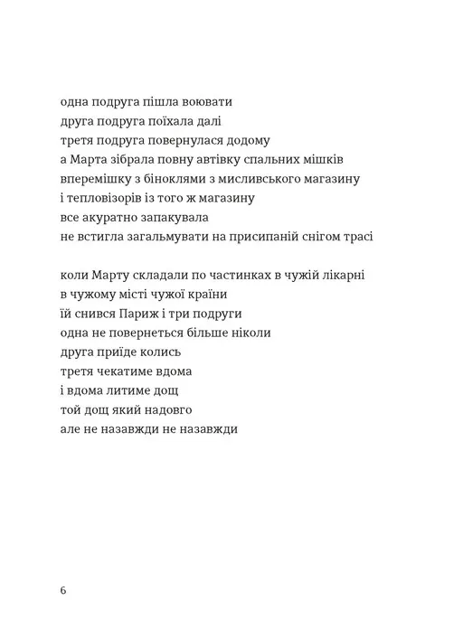 У книзі Зої Казанжи «Марта й інші жінки» розповідається про жінок, які знаходять у собі надлюдську витримку: вони рятують, підтримують, пам’ятають і люблять, навіть якщо їхні крила обпалює війна. Одна перевозить спальники для бійців, інша — вивозить дітей у безпечне місце, третя знищує танки, хоча раніше лише танцювала. Кожна з них живе з вірою в повернення і готова віддати частинку себе заради майбутнього.