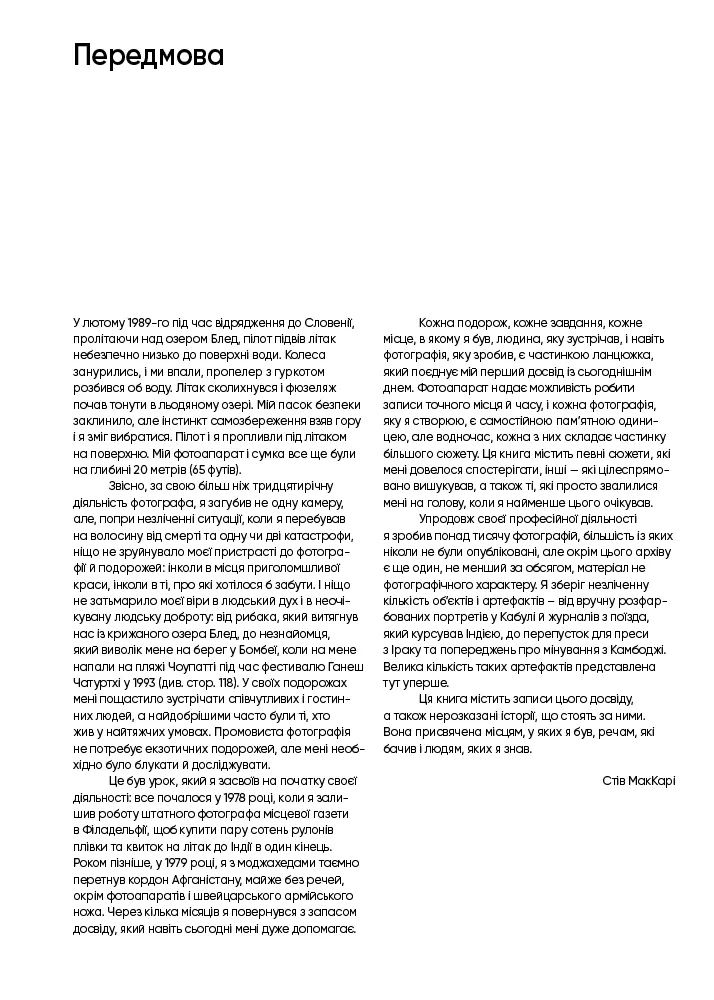 Видання відкриє для вас багатогранність світу через об'єктив МакКарі та його незрівнянний талант розповідати історії за допомогою фотографій.