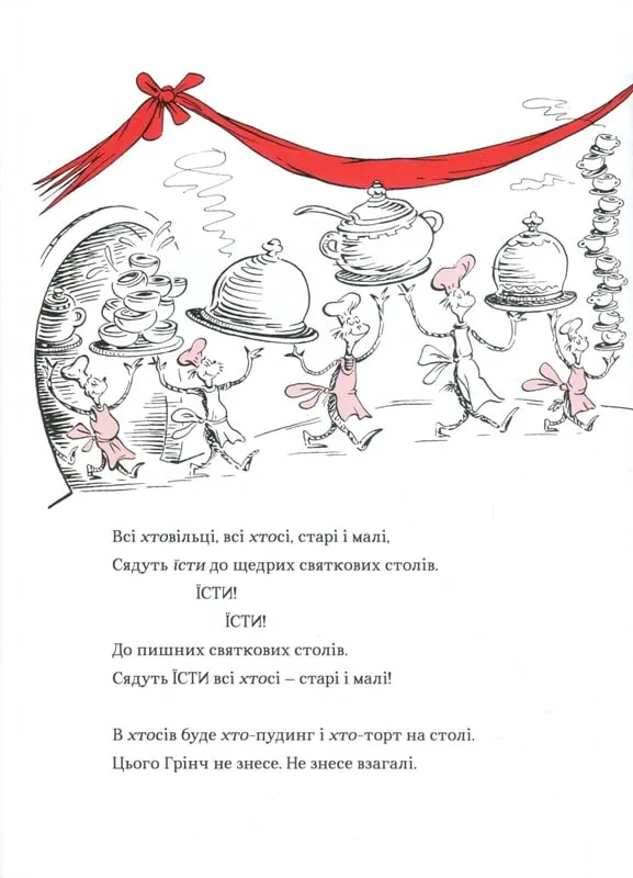 Підступний та похмурий Грінч вирішив завадити приходу Різдва, вкрав всі прикраси та подарунки. Він був впевнений, що без цих неодмінних атрибутів свято ніяк не відбудеться. Але яким великим виявилось його здивування, коли він все ж таки почув радісний спів мешканців містечка Хтовіль, які із щасливими обличчями без дарунків та ласощів зустріли Різдво. Ця подія дуже сильно змінила серце лиходія, воно стало теплим, м’яким та добрим.