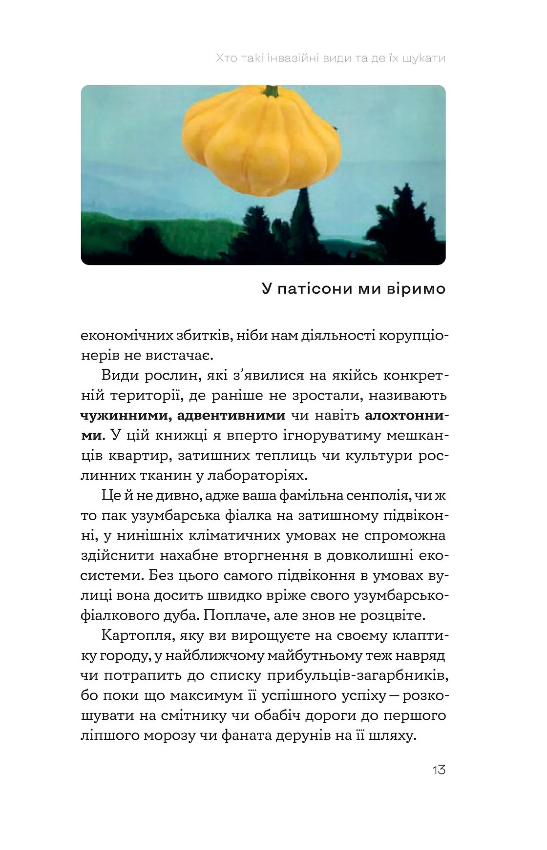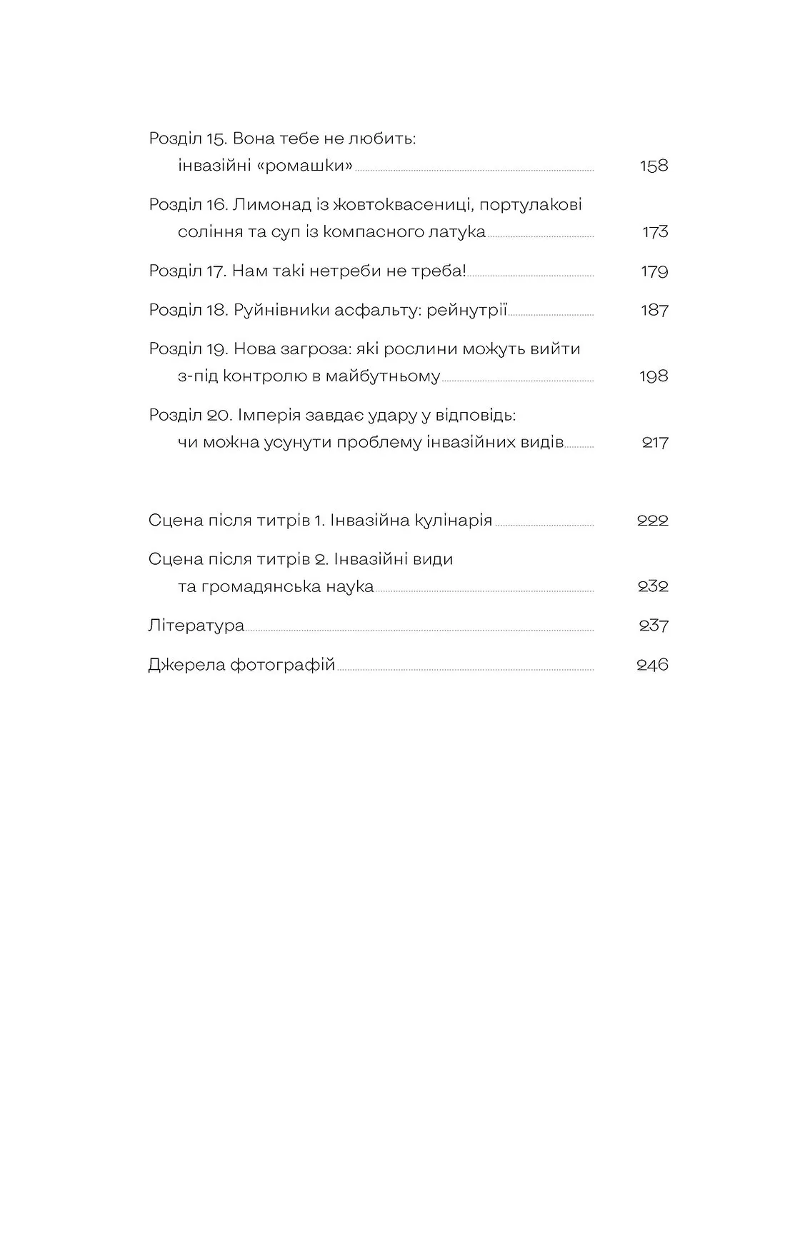 Як американський клен підкорив українські землі? Чому борщівник небезпечно чіпати голіруч? Яка «невинна» квітка з магазину може зруйнувати фундамент вашого будинку? У книзі ботаніка Олексія Коваленка розкрито таємниці рослин-загарбників: від їхніх витончених способів проникнення до порад, як з ними боротися, включно з приготуванням страв із цих непроханих гостей.