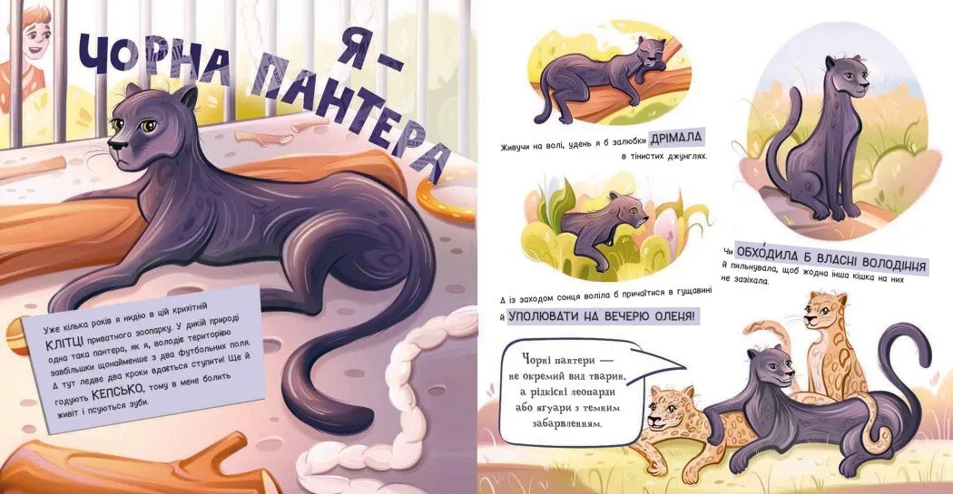 Книга — чудовий спосіб для дітей дізнатися більше про життя тварин, що перебувають у неволі, через їхні власні розповіді. Історії, розказані безпосередньо від тварин, відкривають перед маленькими читачами реалії життя чорних пантера, дельфінів, левів та інших істот, які часто опиняються в умовах, що зовсім не відповідають їхнім природним потребам.