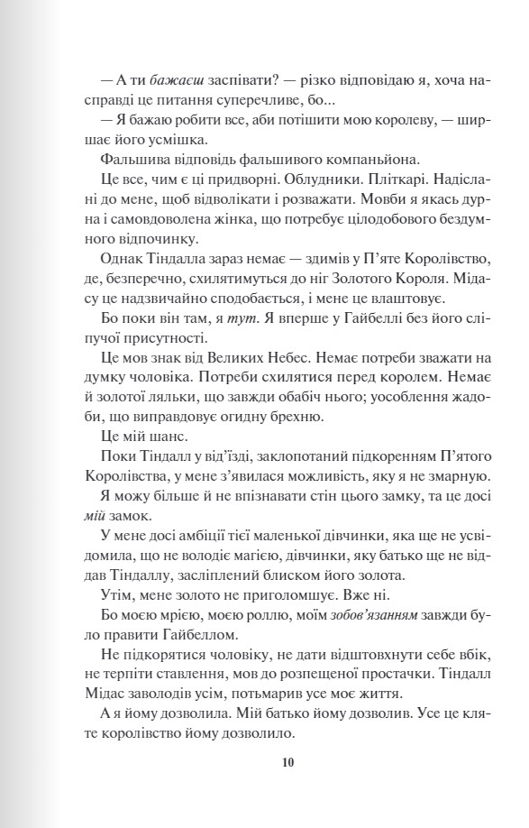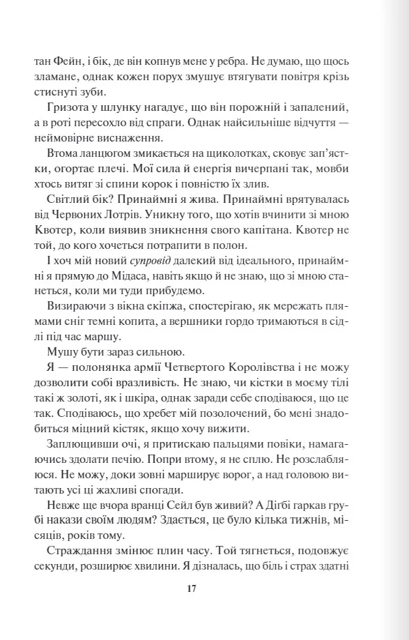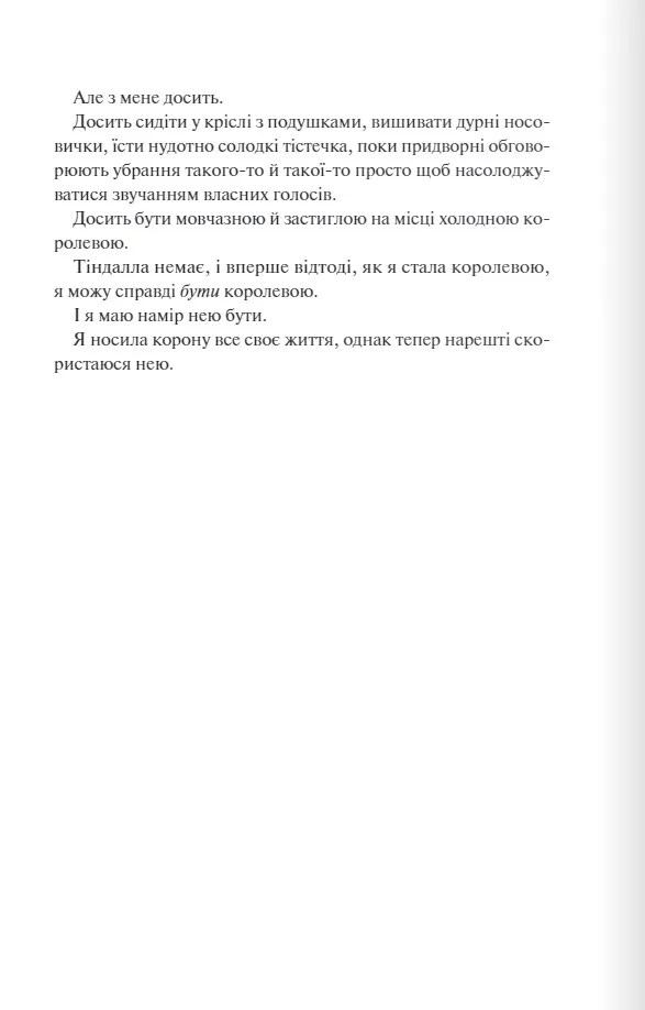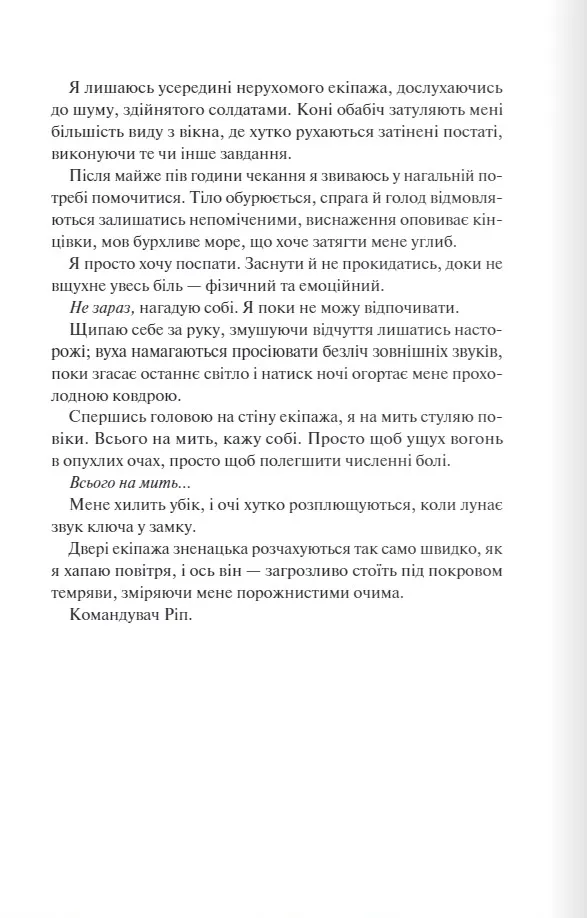 Тепер я бранка армії Четвертого королівства. Вони йдуть у бій, а я - їхній козир, завдяки якому припиниться або з новою силою спалахне війна. Але мій найбільший страх - не полон. А він - безжальний і жорстокий командувач Ріп. У його очах є щось, що мене притягує, хоч я і знаю його секрет. Я знаю, хто він насправді. Десять років я прожила в клітці, але одна ніч змінила все. Однак чи та це свобода, про яку я мріяла?
