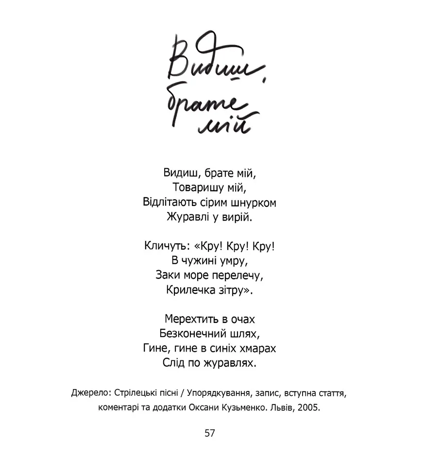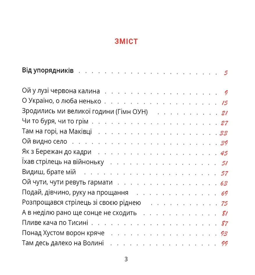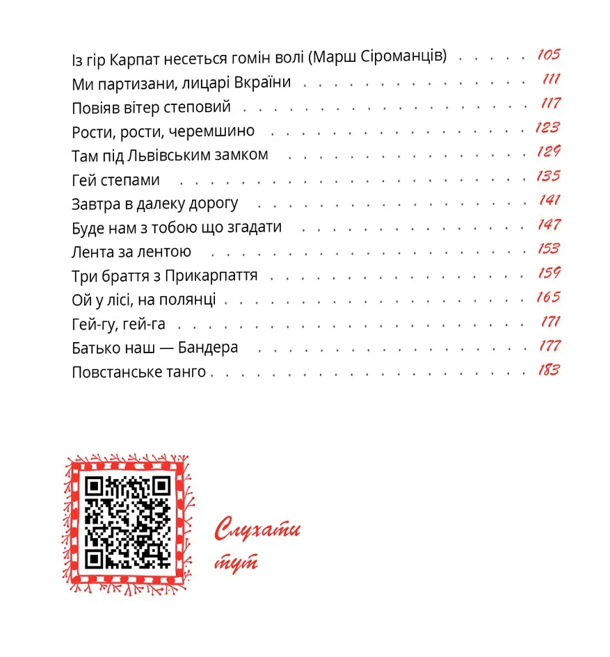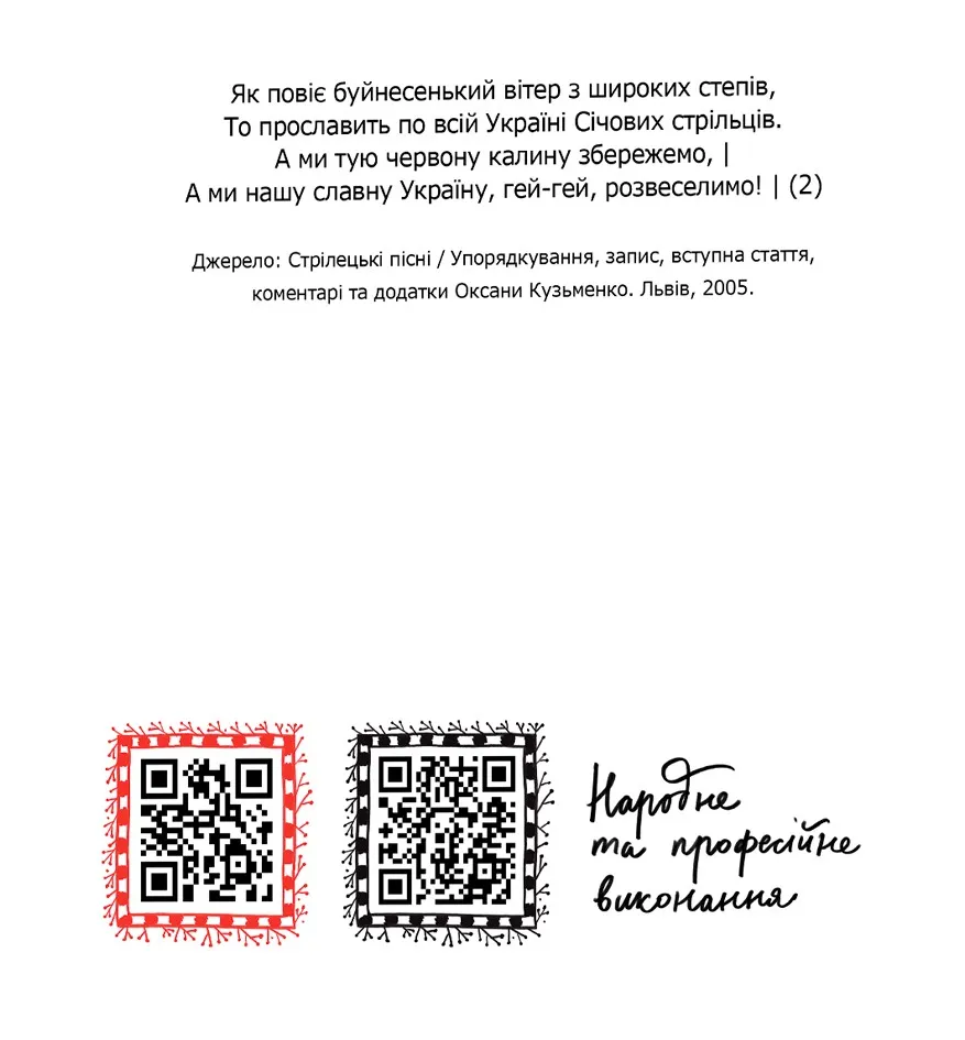 У цьому співанику зібрано тридцять визначних українських пісень, народжених у вирі боротьби за незалежність. Це слова та мелодії, що стали символами різних етапів історії: ними надихалися січові стрільці, співали воїни УПА, а сьогодні їх виконують захисники Збройних Сил України. У книзі представлено короткі історії створення літературних і фольклорних творів, які відіграли важливу роль у формуванні національної самосвідомості та патріотизму.