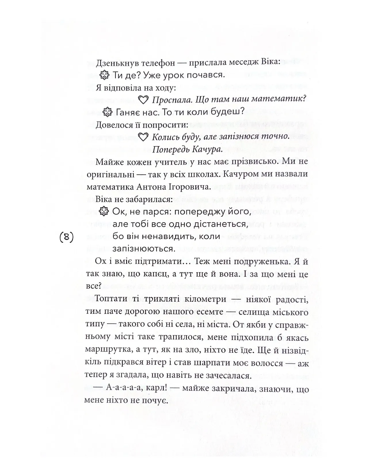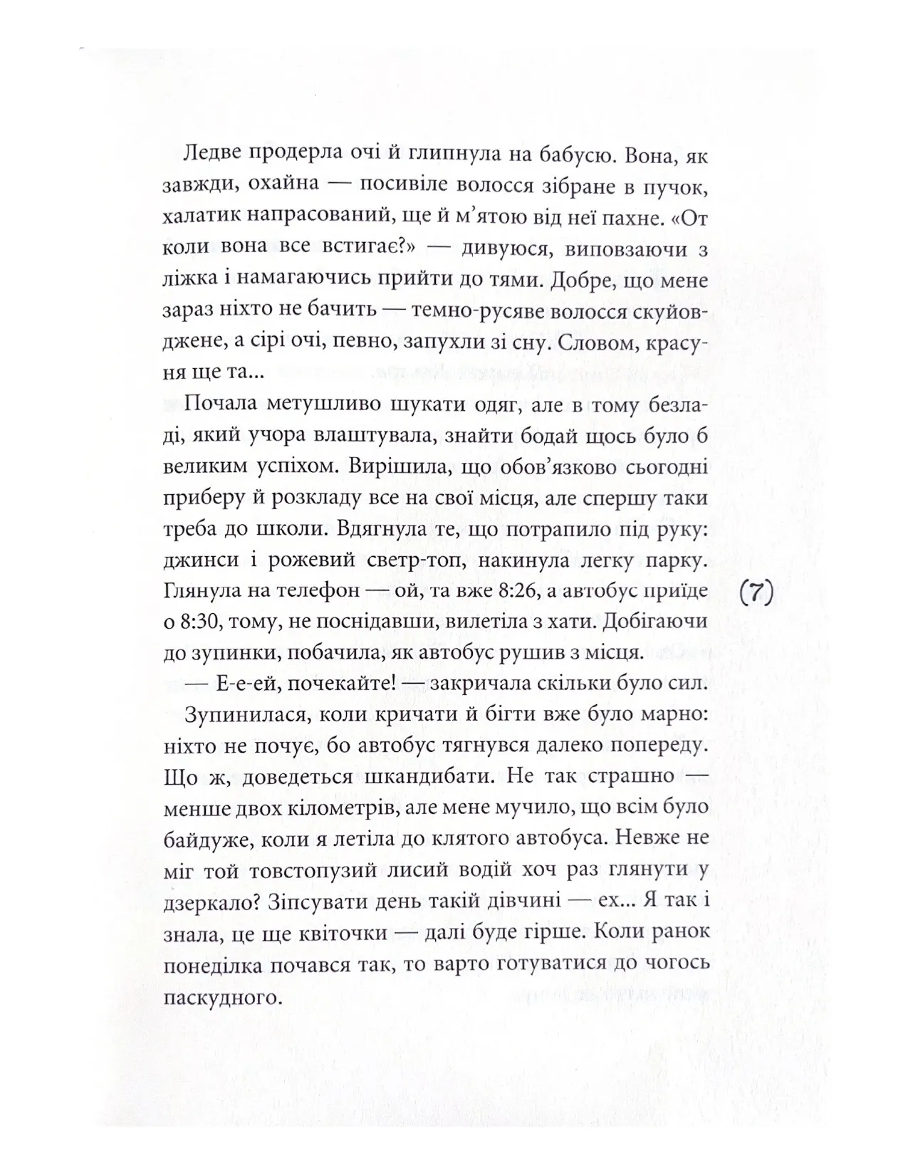 Cпізнення на автобус було для Юлі великою драмою, бо пішки незручно і навряд чи вона встигне на урок. Та якби тільки це діставало. Несподівано й недоречно намалювався свідок її траблів — симпатичний хлопець і, як з’ясувалося, новачок з паралельного класу. Від нього теж проблеми: то м’ячем у лице влучить, то в крадіжці необґрунтовано звинуватить. А пригода з яйцями в його присутності мало не добила Юлю. Та й Ден, який уже давно їй подобається, зовсім не звертає на неї уваги. Раптом у Юлі з’являється надія: Ден захотів поспілкуватися про щось дуже важливе. Але він руйнує всі мрії разом з її найкращою подругою. І лише небезпечне зіткнення зі злочинцями й відчуття реальної загрози допомагають їй збагнути, хто ким є, побачити себе й відчути справді близьку людину.