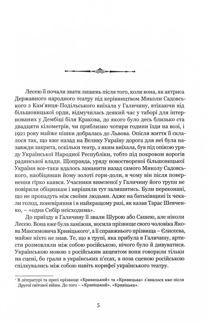 Леся Кривицька — видатна українська акторка, яка зробила значний внесок у розвиток культурного життя України. Її ім'я стало синонімом театрального мистецтва, адже вона не лише прикрашала сцену своєю майстерністю, але й формувала нові стандарти акторської гри.