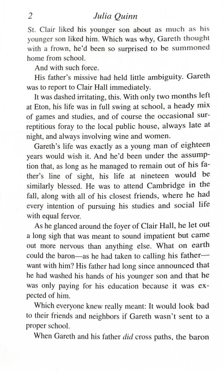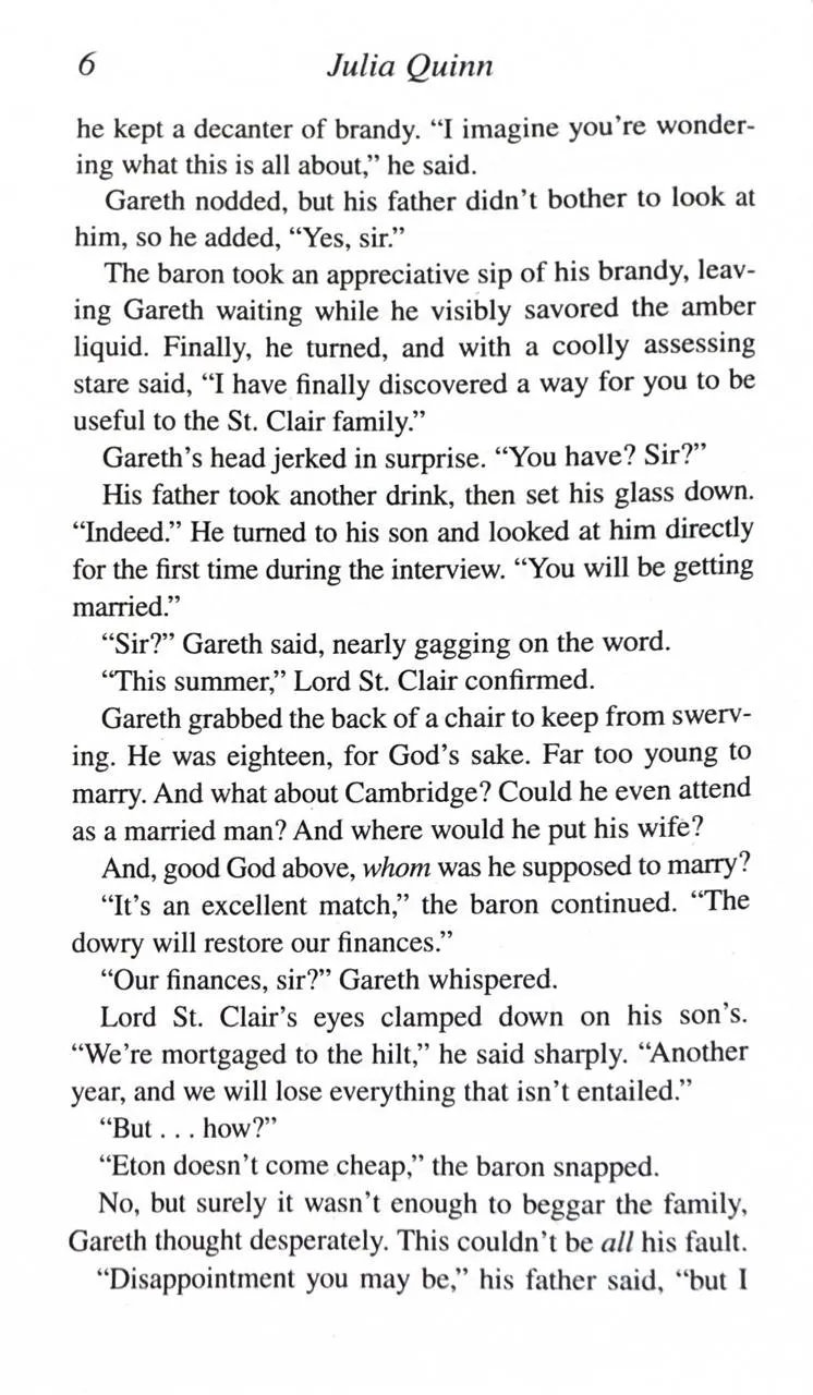 All the ton agree: there is no one quite like Hyacinth Bridgerton. Fiendishly smart, devilishly outspoken and – according to some, particularly Gareth St. Clair – probably best in small doses. But there’s something about her – something charming and vexing – that grabs one and won’t quite let go. Gareth and Hyacinth cross paths at the annual – and annually discordant – Smythe-Smith musicale. To Hyacinth, Gareth’s every word seems a dare, and she offers to help him out with a knotty inheritance problem he’s facing. However, as they delve into the mysterious St Clair history, they discover that the answers they seek lie not in the past – but in each other; and that there is nothing as simple – or as complicated – as a single, perfect kiss.
