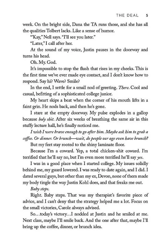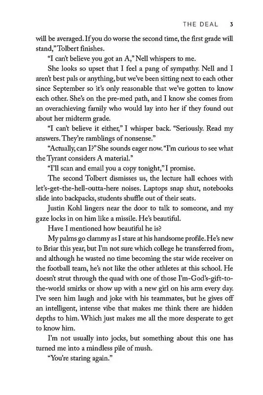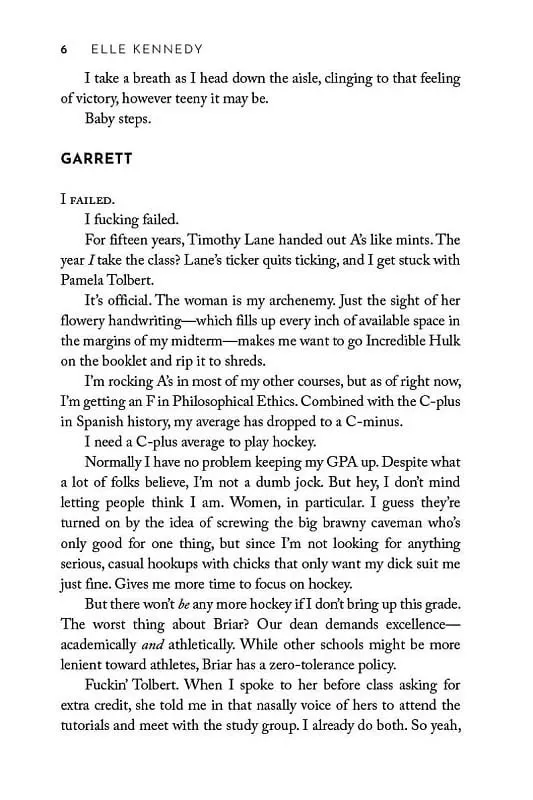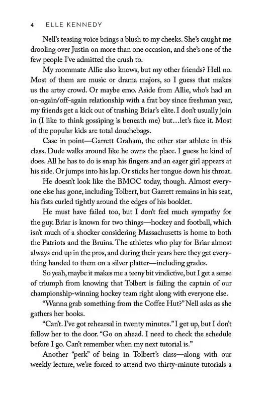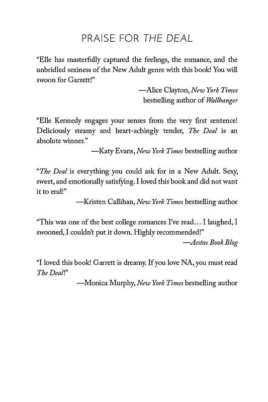 Welcome to Briar U! Get ready for your newest obsession . . . Discover the addictive world of the Off-Campus series from The Queen of Hockey Romance, Elle Kennedy! Read The Deal now for the perfect fake-dating romance! She's about to make a deal with the college bad boy . . . Hannah Wells has finally found someone who turns her on. But while she might be confident in every other area of her life, she's carting around a full set of baggage when it comes to sex and seduction. If she wants to get her crush's attention, she'll have to step out of her comfort zone and make him take notice . . . even if it means tutoring the annoying, childish, cocky captain of the hockey team in exchange for a pretend date . . . and it's going to be oh so good All Garrett Graham has ever wanted is to play professional hockey after graduation, but his plummeting GPA is threatening everything he's worked so hard for. If helping a sarcastic brunette make another guy jealous will help him secure his position on the team, he's all for it. But when one unexpected kiss leads to the wildest sex of both their lives, it doesn't take long for Garrett to realize that pretend isn't going to cut it. Now he just has to convince Hannah that the man she wants looks a lot like him.