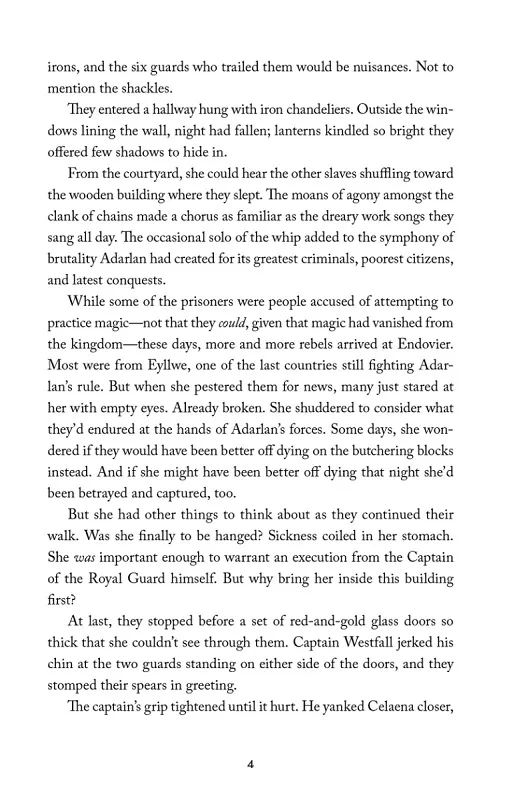 Але щось гниле живе в замку – і воно там, щоб убити. Коли її конкуренти починають таємничим чином вмирати один за одним, боротьба Селенани за свободу стає боротьбою за виживання – і відчайдушним прагненням викорінити зло, перш ніж воно знищить її світ і людей, яких вона полюбила.
