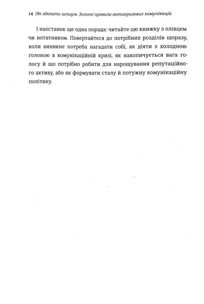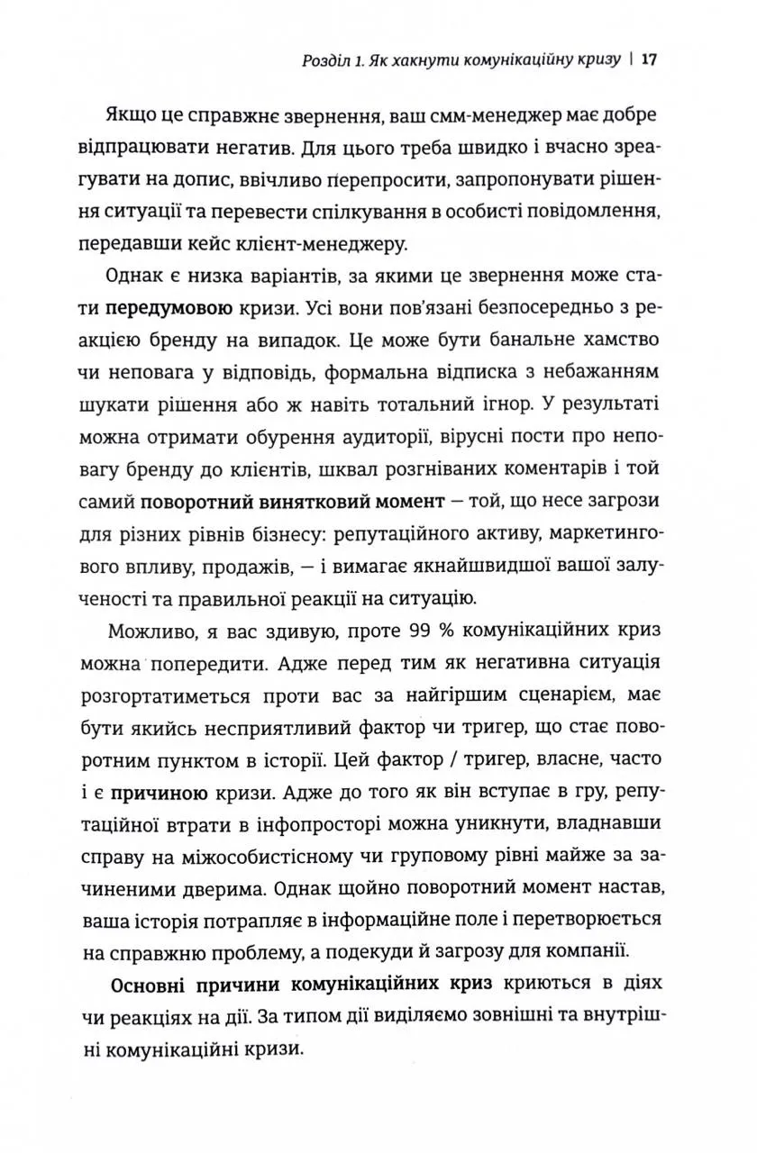 Окремої рекомендації заслуговують поради авторки щодо зміцнення бренду та підготовки до періодів інформаційної турбулентності.