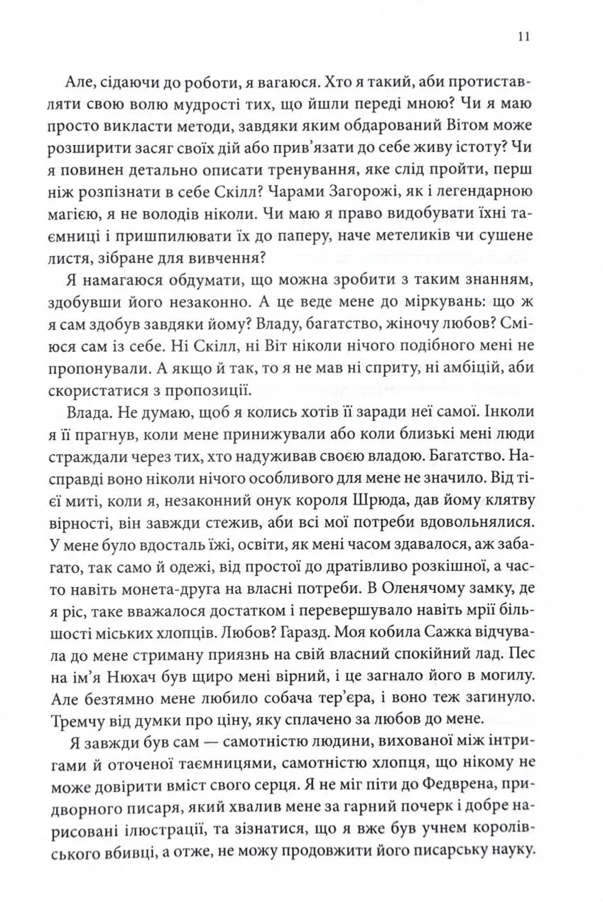 Основні події книги зосереджені навколо Фітца Чивела та його вірного вовка Нічноокого. Вони вирушають у небезпечну подорож, сповнену таємниць, зради та магії. Головний герой змушений боротися не лише з ворогами, але й із власною сутністю, адже він стикається з дилемою: чи є він ще людиною, чи вже перетворився на звіра?