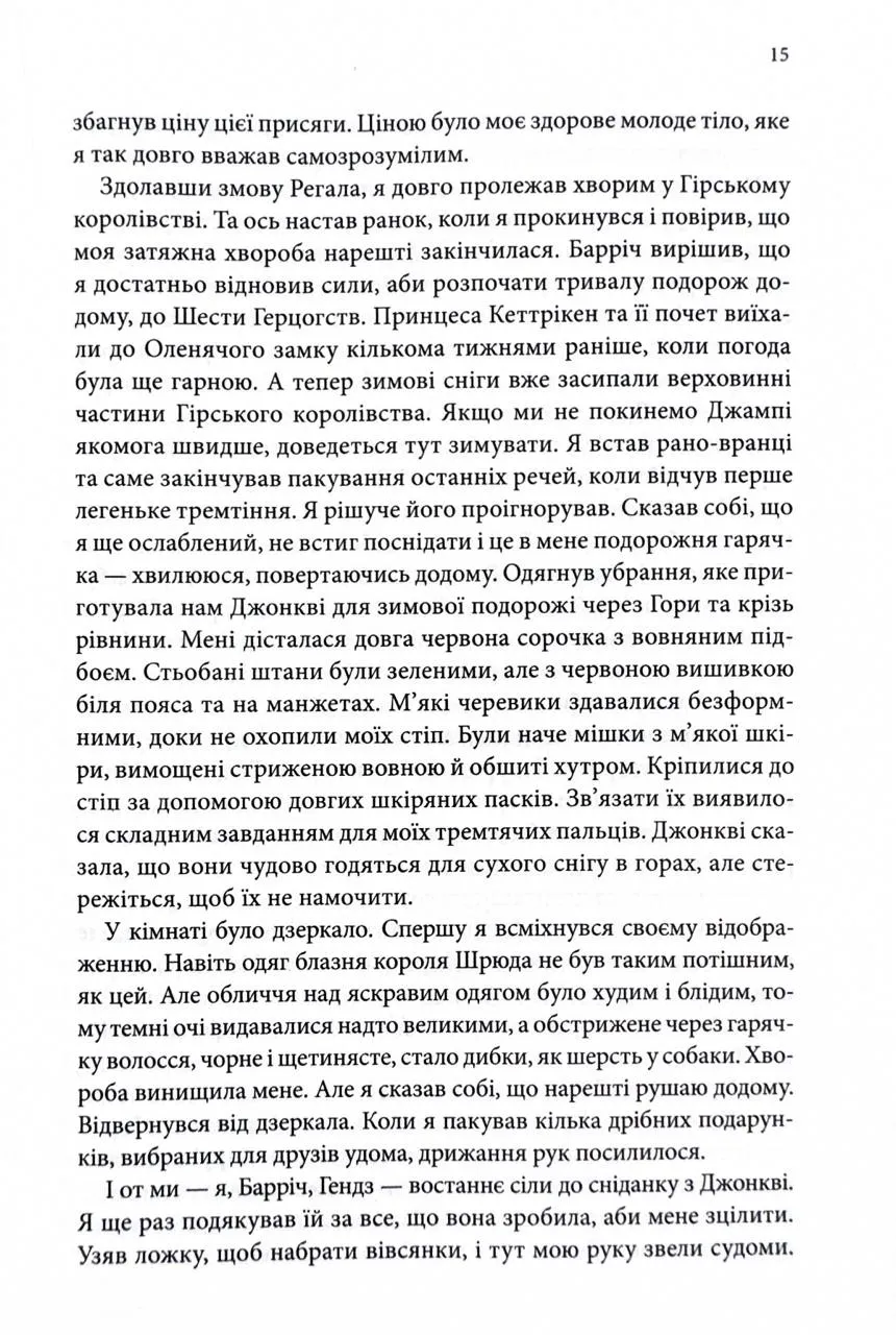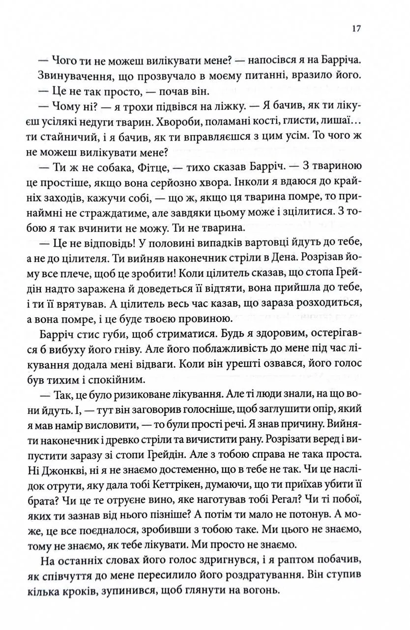Роман «Королівський убивця» – це продовження захопливої історії Фітца Чивела, позашлюбного сина принца, який стає убивцею при королівському дворі. На нього покладено небезпечну місію – полювання на «перекованих», людей, що втратили свою сутність.
