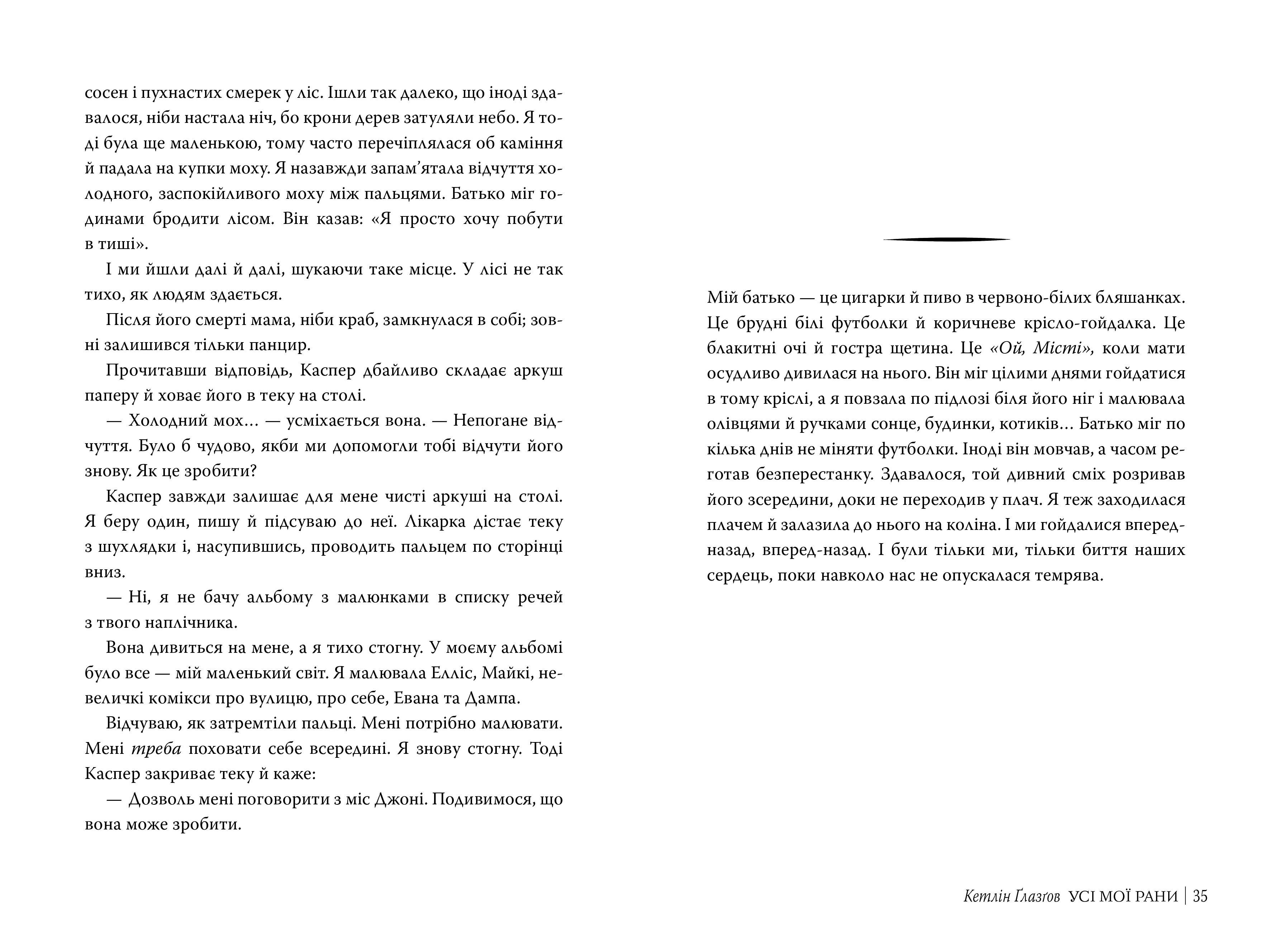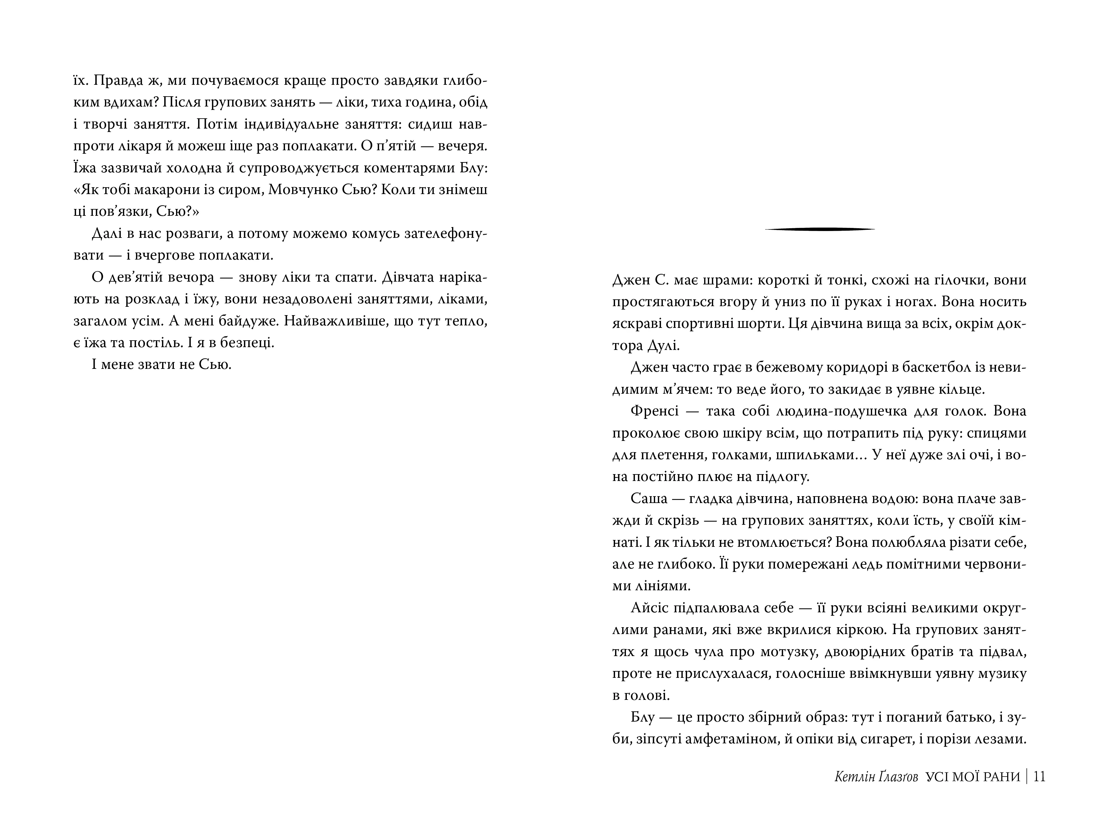 Роман Усі мої рани Кетлін Ґлазґов – це не просто підліткова драма, а книга, яка змушує задуматися, співпереживати і знаходити надію навіть у найтемніші моменти життя.
