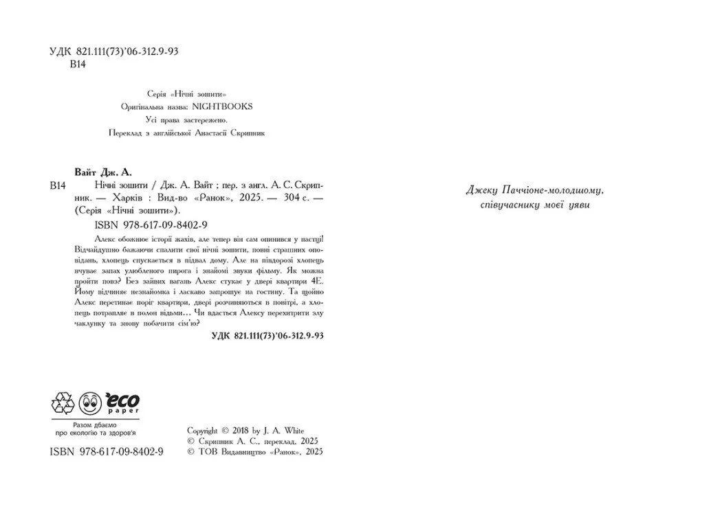 Дж. А. Вайт добре відомий любителям книг у жанрі жахів та фентезі. Його серія "Школа Тіні" здобула широку популярність, а тепер читачі мають змогу познайомитися з "Нічними зошитами" – правдиво моторошною та захопливою історією.