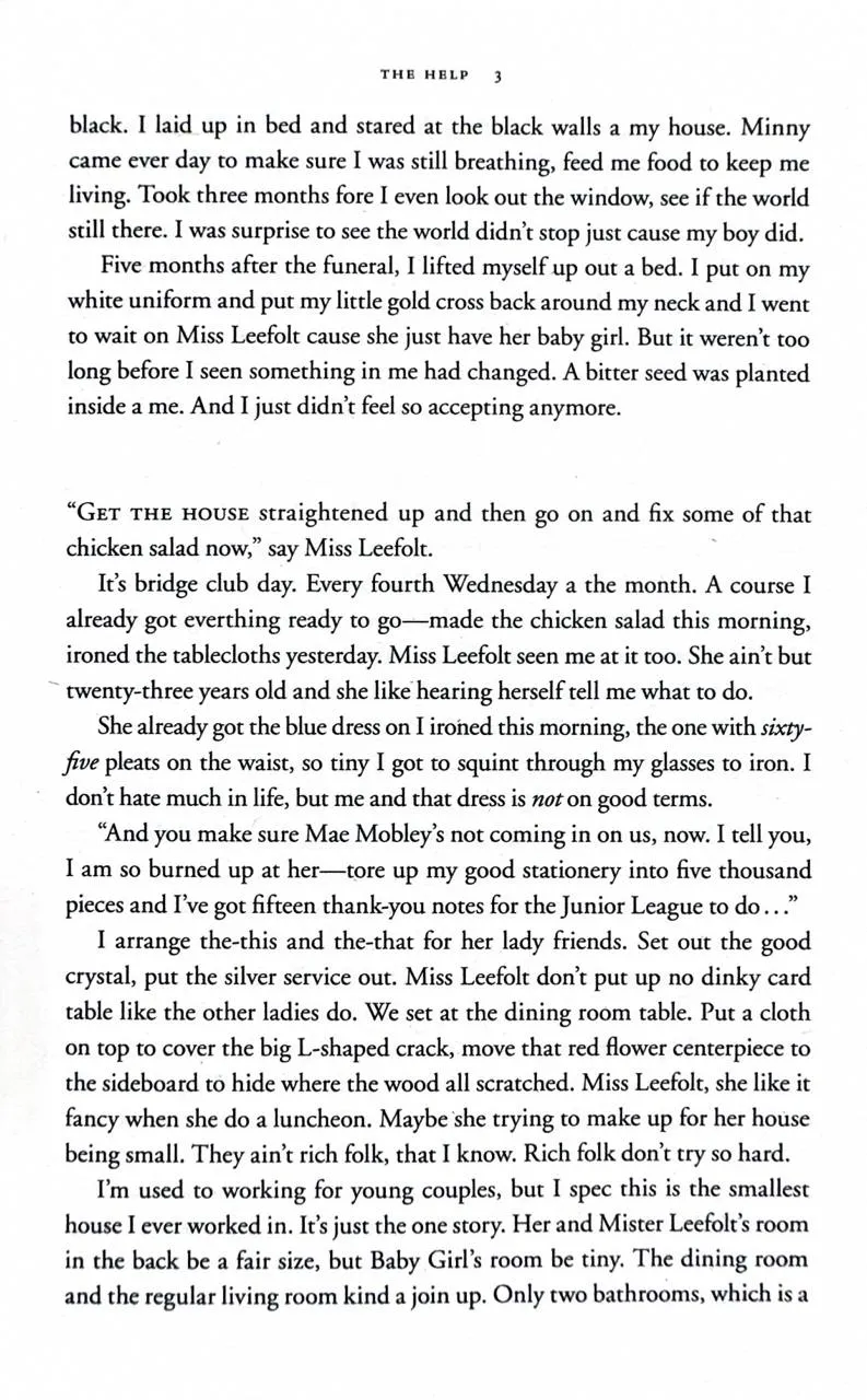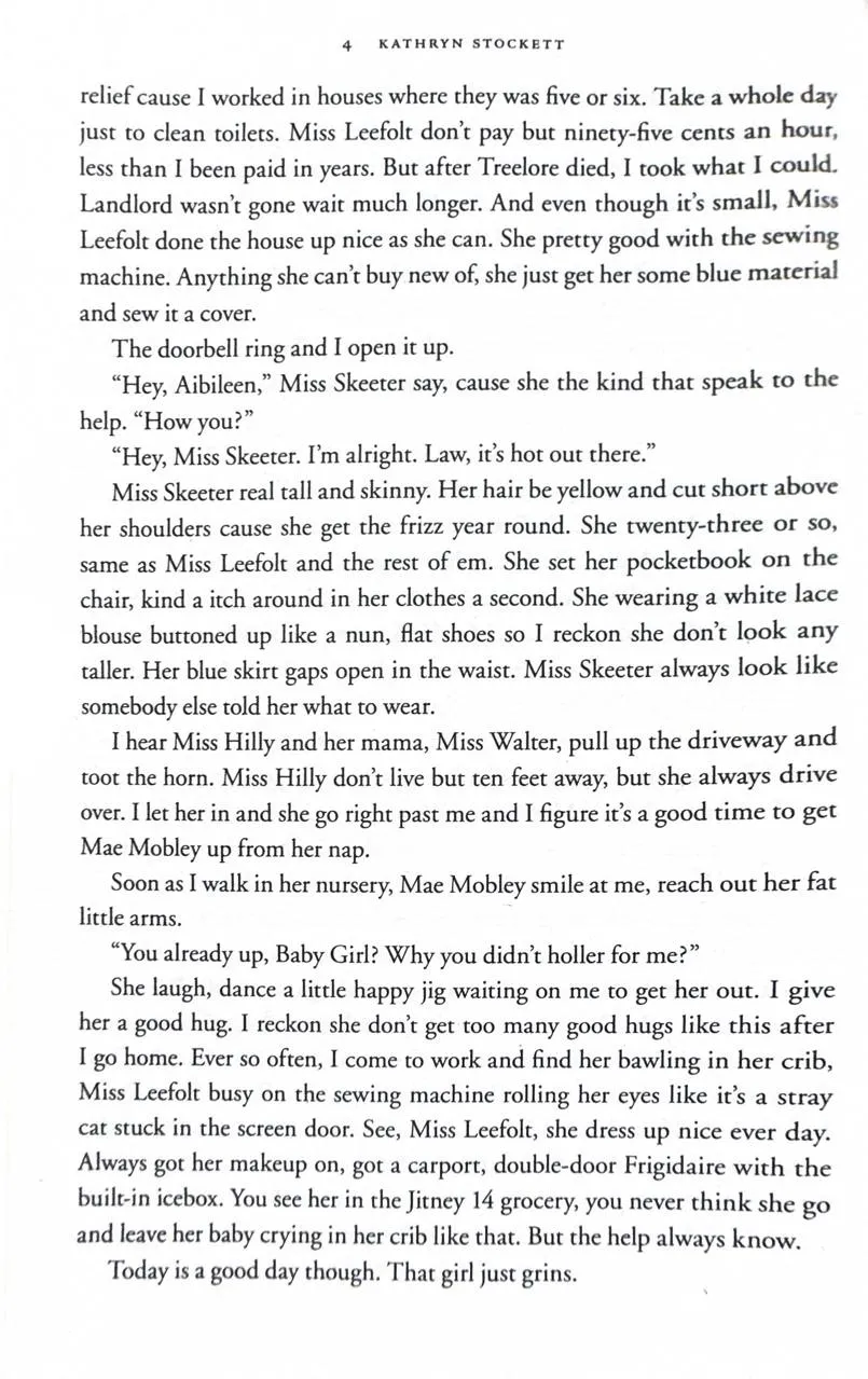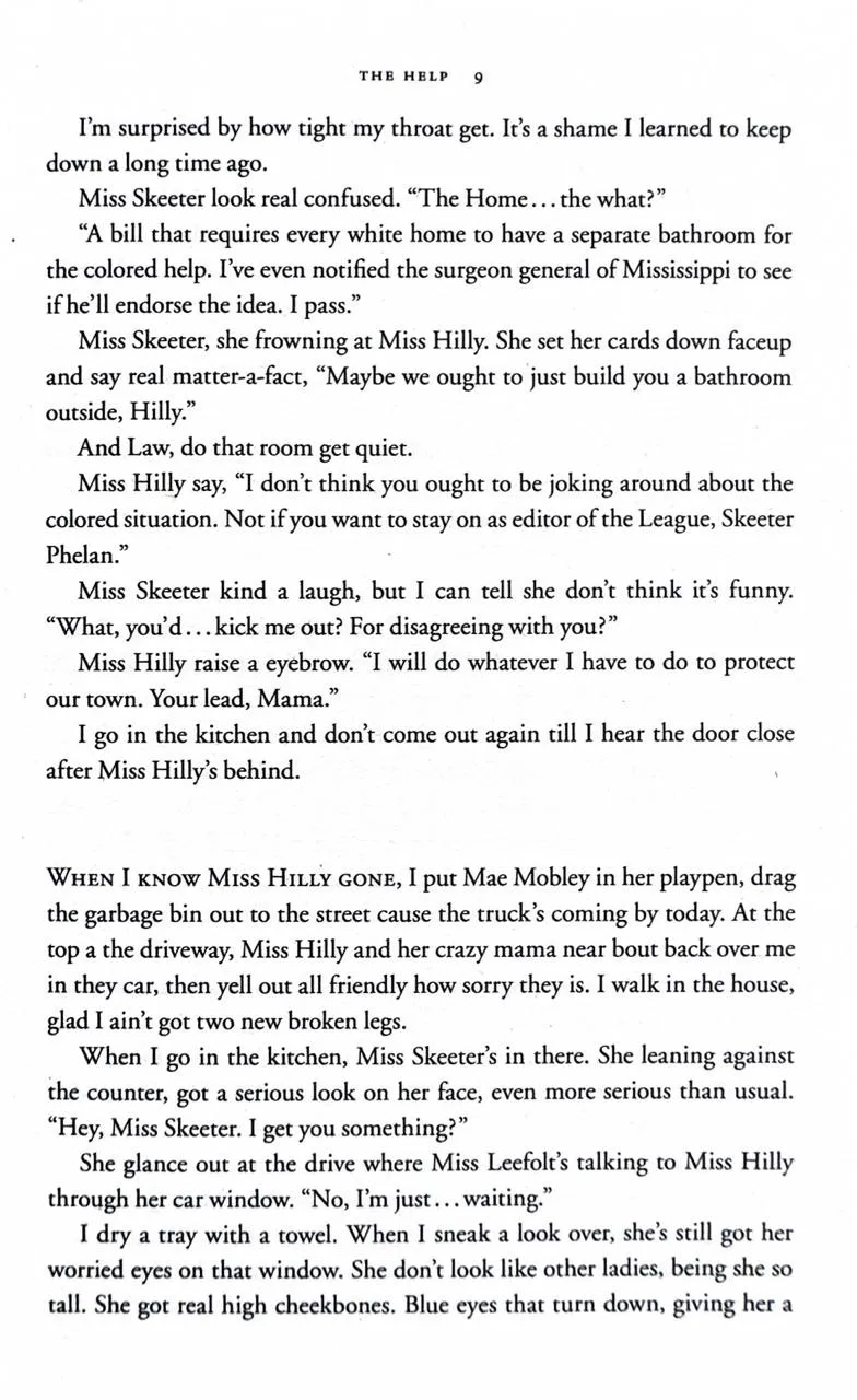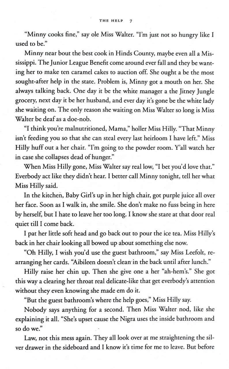 Enter a vanished and unjust world: Jackson, Mississippi, 1962. Where black maids raise white children, but aren't trusted not to steal the silver...There's Aibileen, raising her seventeenth white child and nursing the hurt caused by her own son's tragic death; Minny, whose cooking is nearly as sassy as her tongue; and white Miss Skeeter, home from College, who wants to know why her beloved maid has disappeared.Skeeter, Aibileen and Minny. No one would believe they'd be friends; fewer still would tolerate it. But as each woman finds the courage to cross boundaries, they come to depend and rely upon one another. Each is in a search of a truth. And together they have an extraordinary story to tell...