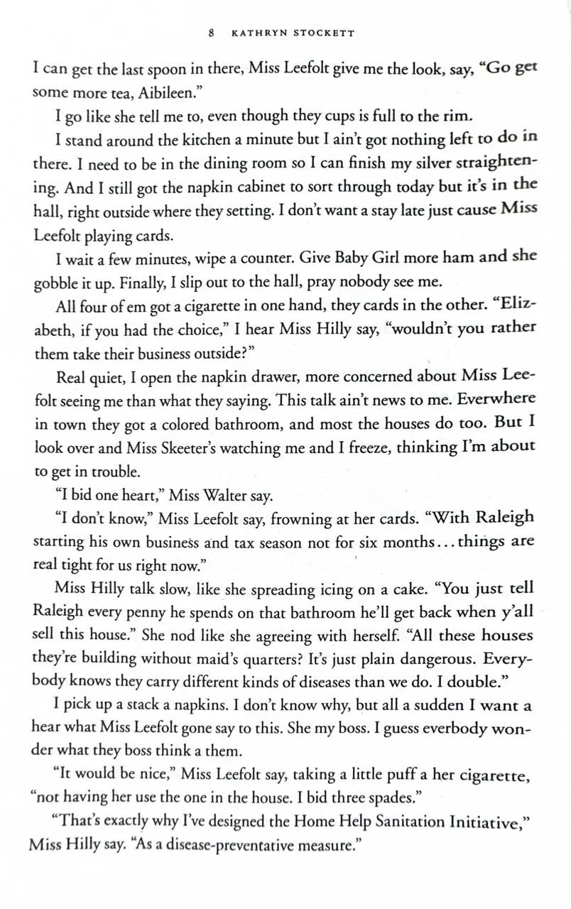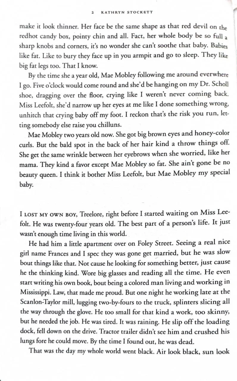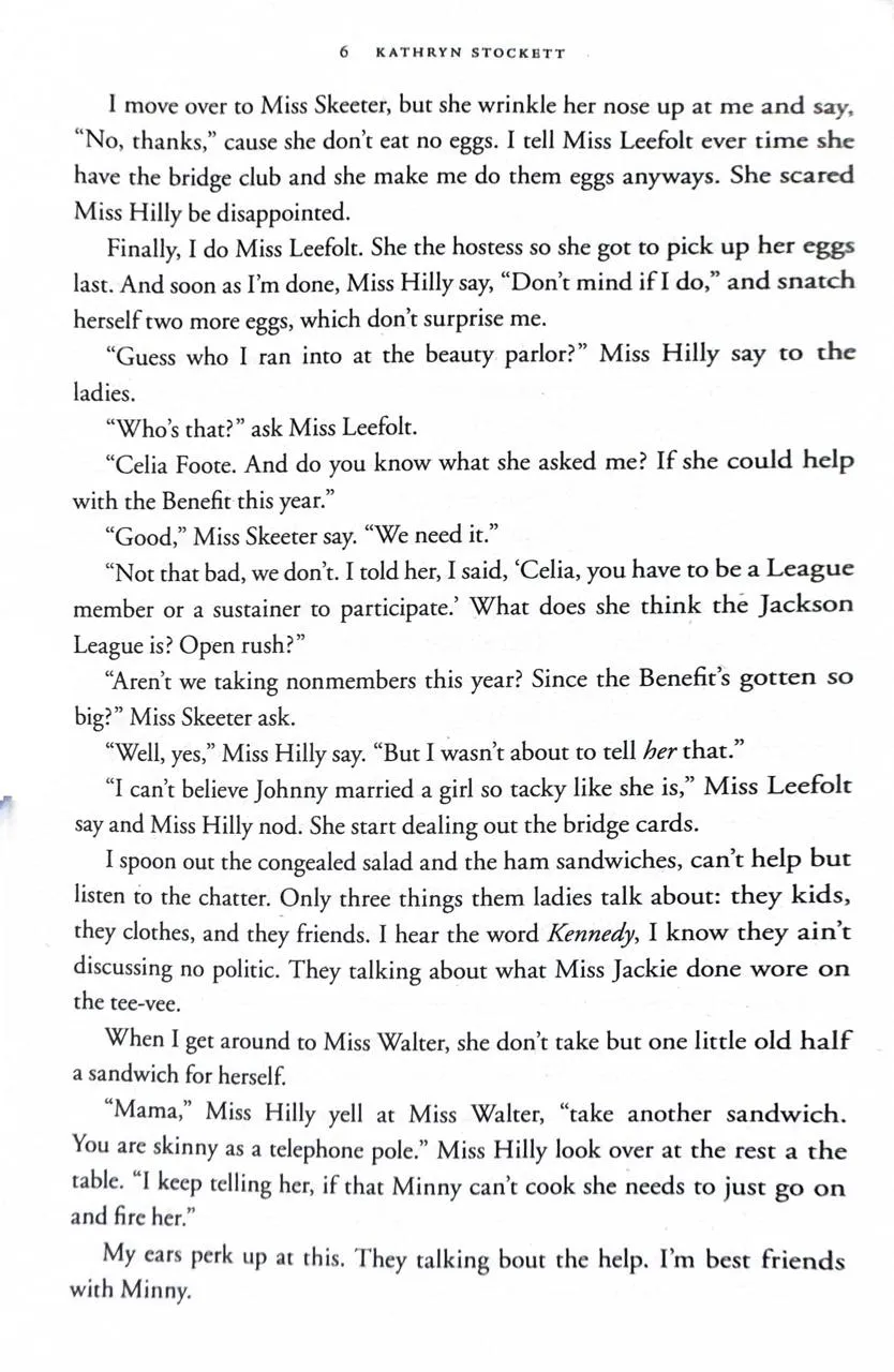 Enter a vanished and unjust world: Jackson, Mississippi, 1962. Where black maids raise white children, but aren't trusted not to steal the silver...There's Aibileen, raising her seventeenth white child and nursing the hurt caused by her own son's tragic death; Minny, whose cooking is nearly as sassy as her tongue; and white Miss Skeeter, home from College, who wants to know why her beloved maid has disappeared.Skeeter, Aibileen and Minny. No one would believe they'd be friends; fewer still would tolerate it. But as each woman finds the courage to cross boundaries, they come to depend and rely upon one another. Each is in a search of a truth. And together they have an extraordinary story to tell...
