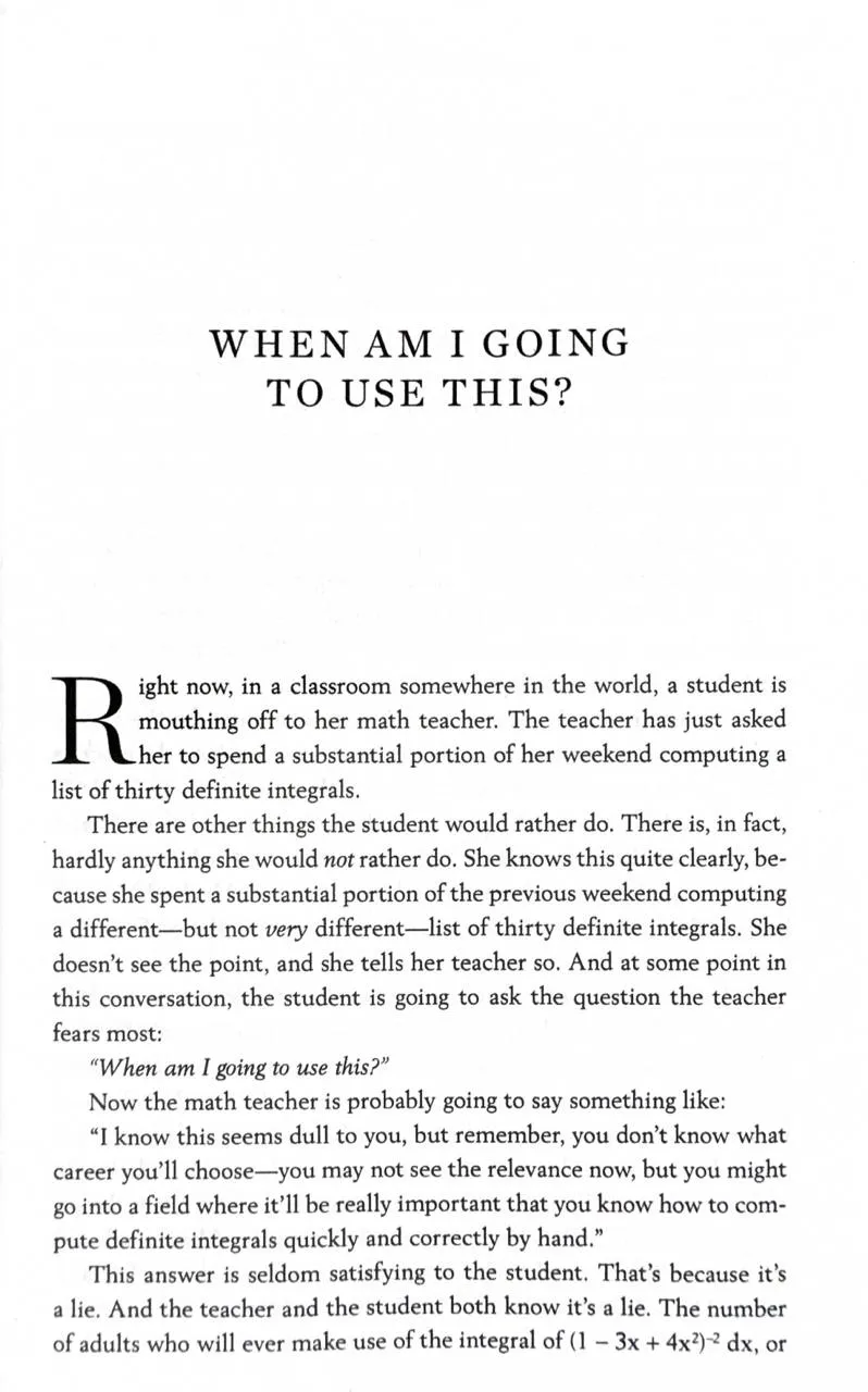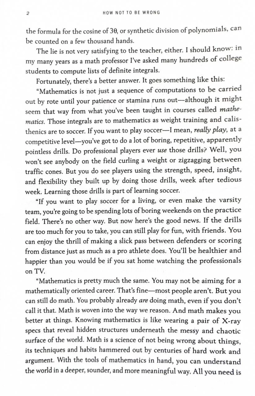The maths we learn in school can seem like an abstract set of rules, laid down by the ancients and not to be questioned. In fact, Jordan Ellenberg shows us, maths touches on everything we do, and a little mathematical knowledge reveals the hidden structures that lie beneath the world's messy and chaotic surface. In How Not to be Wrong, Ellenberg explores the mathematician's method of analyzing life, from the everyday to the cosmic, showing us which numbers to defend, which ones to ignore, and when to change the equation entirely. Along the way, he explains calculus in a single page, describes Gödel's theorem using only one-syllable words, and reveals how early you actually need to get to the airport.
