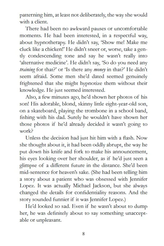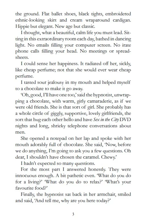 Hypnotherapist Ellen is fascinated by what makes people tick. So when she falls in love with Patrick, the fact that he has a stalker doesn't faze her in the slightest. If anything it intrigues her, and the more she hears about Saskia, the more she wants to meet this woman. But what Ellen doesn't know is that they've already met . . .Saskia has been posing as one of Ellen's clients. Unable to let go of the life she so abruptly lost, she wants to know everything about the woman who took her place. And the further she inches her way into Ellen's world, the more trouble she stirs up.Ellen is about to take an unexpected turn. But what lines is she herself prepared to cross to get the happy ending she's always wanted?