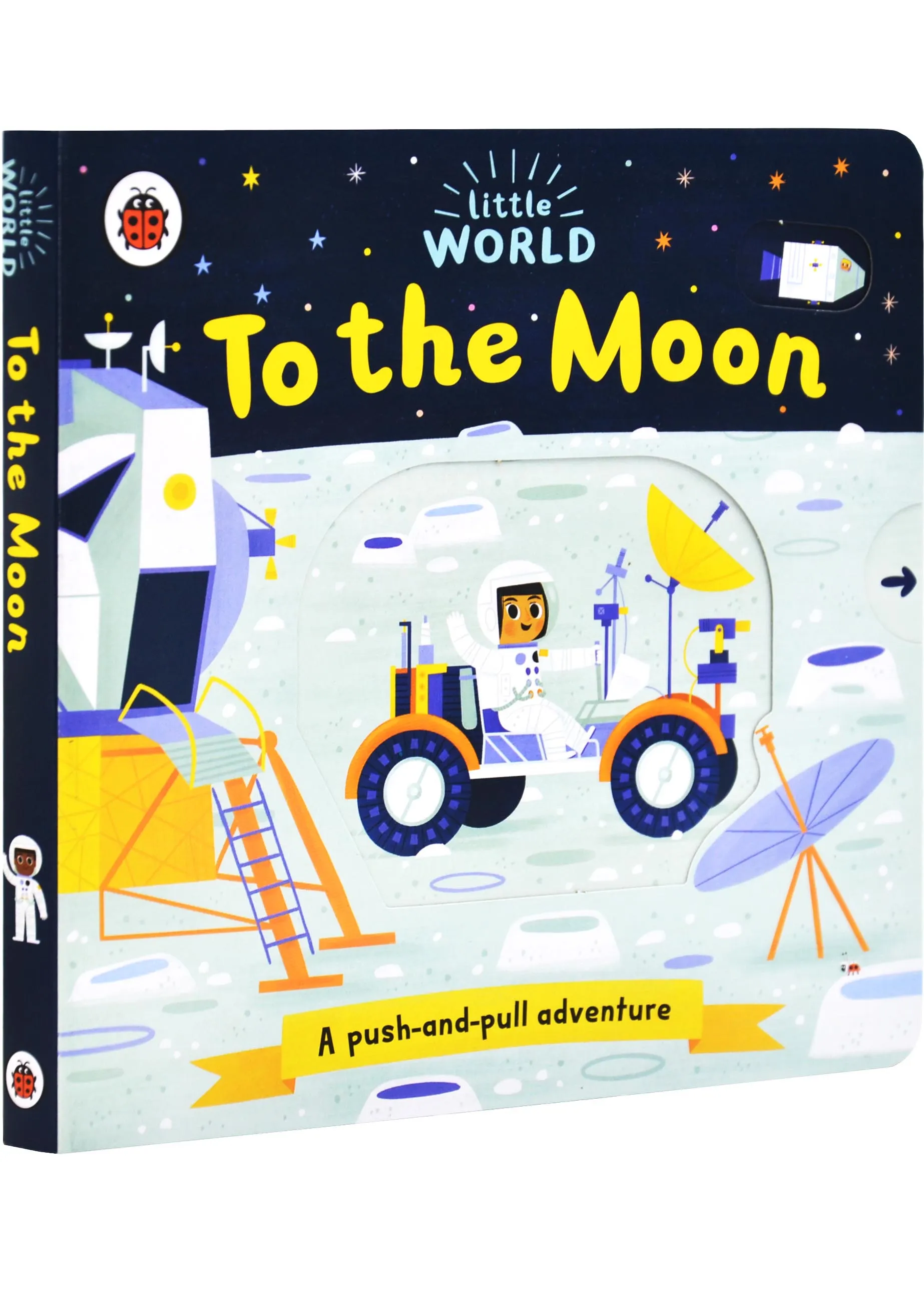 Curious minds will love to explore the rocky surface of the Moon with this interactive title from the Little World series. Follow in the footsteps of the first lunar astronauts in this bright and colourful board book, which features a sturdy novelty to slide, push or pull on every spread... including double pulls that go up, up and up!