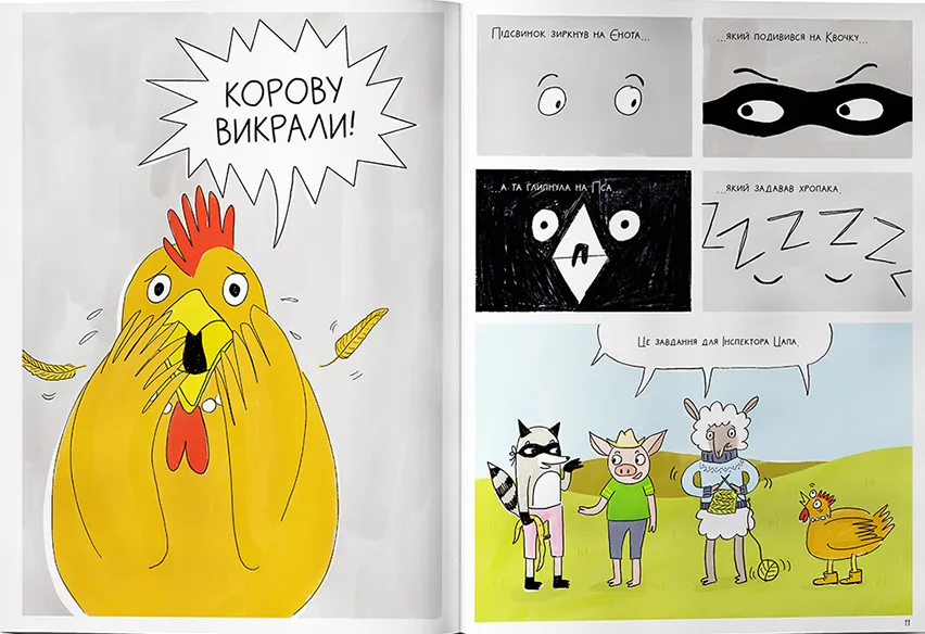 Знову на фермі відбуваються дивні речі. Неможливо таке уявити, але тепер зникла ціла корова! Хто її викрав? Може, це прибульці?.. Тут потрібен Інспектор Цап, і ніхто інший! Кумедний комікс серії "Злочини на фермі" для дітей від чотирьох років.