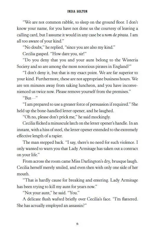 Bridgerton meets Peaky Blinders in this swashbuckling tale of scoundrels and society, crime and crumpets. As these enemies turn to allies and might just fall in love along the way…'Victorian lady assassins fighting the patriarchy, flying houses, AND...an ONLY ONE BED trope?! Fun fun fun' 5***** Reader Review---Cecilia Bassingwaite belongs to The Wisteria Society of Lady Scoundrels.Yet this is no ordinary Victorian lady's society . . .Full of pirates, thieves and ne'er-do-wells, these women spend their days pickpocketing and blackmailing their way around the country all before their afternoon tea.But when Cecilia meets Ned Lightbourne her world is set to change forever.Because he's a paid assassin and she's his next hit.Under the employment of the dastardly Captain Morvath - who wants to rid the world of these Lady Scoundrels - Ned knows he has one job to do.But when he lays eyes on the feisty, beautiful Cecilia he's faced with a conundrum:Does he kill her . . . or fall in love with her?Tropes/themes:1. Only one bed2. Enemies to lovers3. Strong female leads