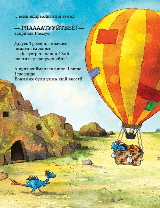 Книга "Друзяки-динозаврики. Політ на повітряній кулі" – це захоплююча історія про пригоди Рамуса та Тіммі. Одного разу, коли вони гостювали у дідуся Троодона, він отримав листа про покинуте яйце у гнізді на височенному дереві. Як дістатися до нього? На щастя, у дідуся була повітряна куля! Проте літати йому було вже важко, тож героям довелося вирушити в пригоду самостійно.