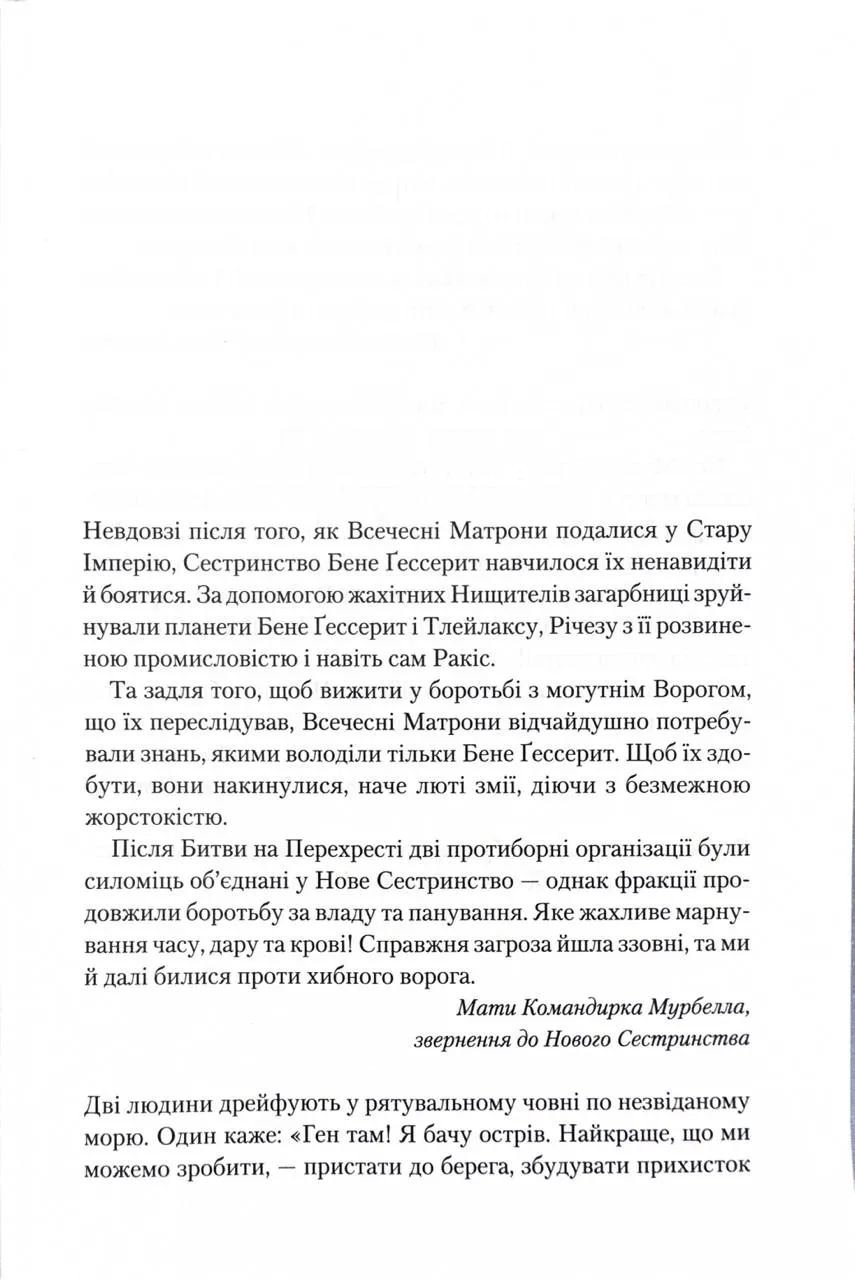 Поки не-корабель "Ітака" мандрує крізь космічний простір, Ворог переслідує Всечесних Матрон, прагнучи загнати їх у їхній рідний всесвіт. Але відбувається несподіване — древні машини, яких вважали повністю знищеними під час Батлеріанського джихаду, повертаються. Їх мета — здійснити реванш та розпочати новий етап війни.