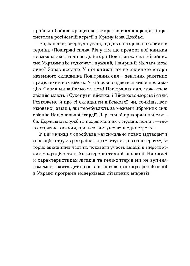 Це ґрунтовне дослідження дає читачам уявлення про маловідомі сторінки історії української авіації та її розвиток у непростих умовах. Видання буде цікавим як історикам, так і військовим аналітикам, а також усім, хто стежить за розвитком українських Повітряних сил.