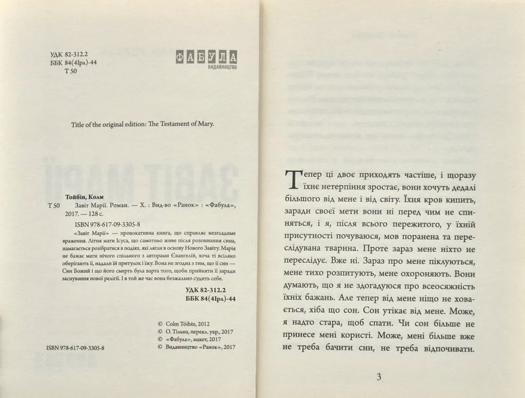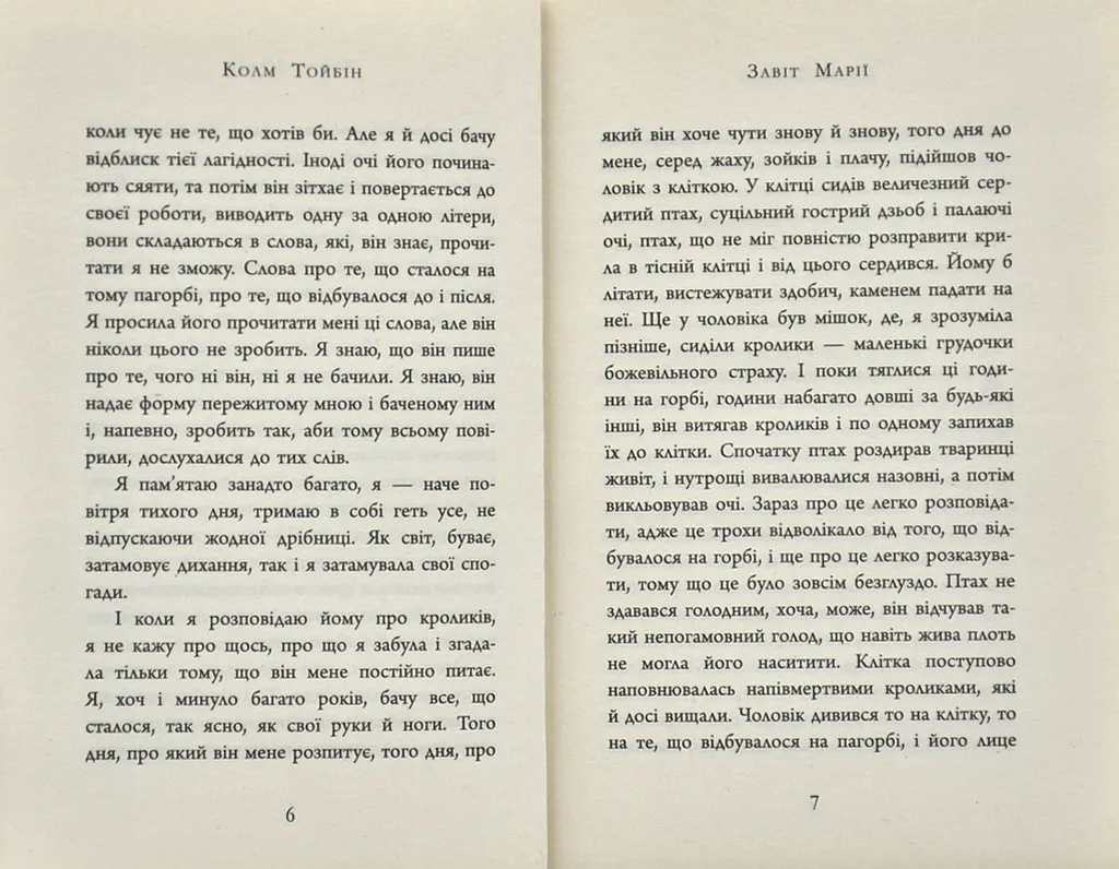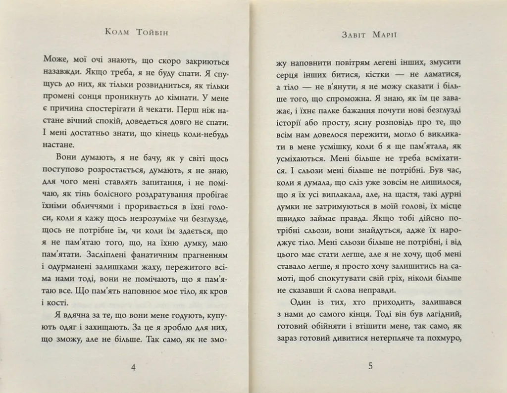 «Завіт Марії» — провокативна книга, що справляє незгладиме враження. Літня мати Ісуса, що самотньо живе після розпинання сина, намагається розібратися в подіях, які лягли в основу Нового Завіту. Марія не бажає мати нічого спільного з авторами Євангелій, хоча ті всіляко оберігають її, надали їй притулок і їжу. Вона не згодна з тим, що її син — Син Божий і що його смерть була варта того, щоби прийняти її заради заснування нової релігії. І в той же час вона безжально судить себе.