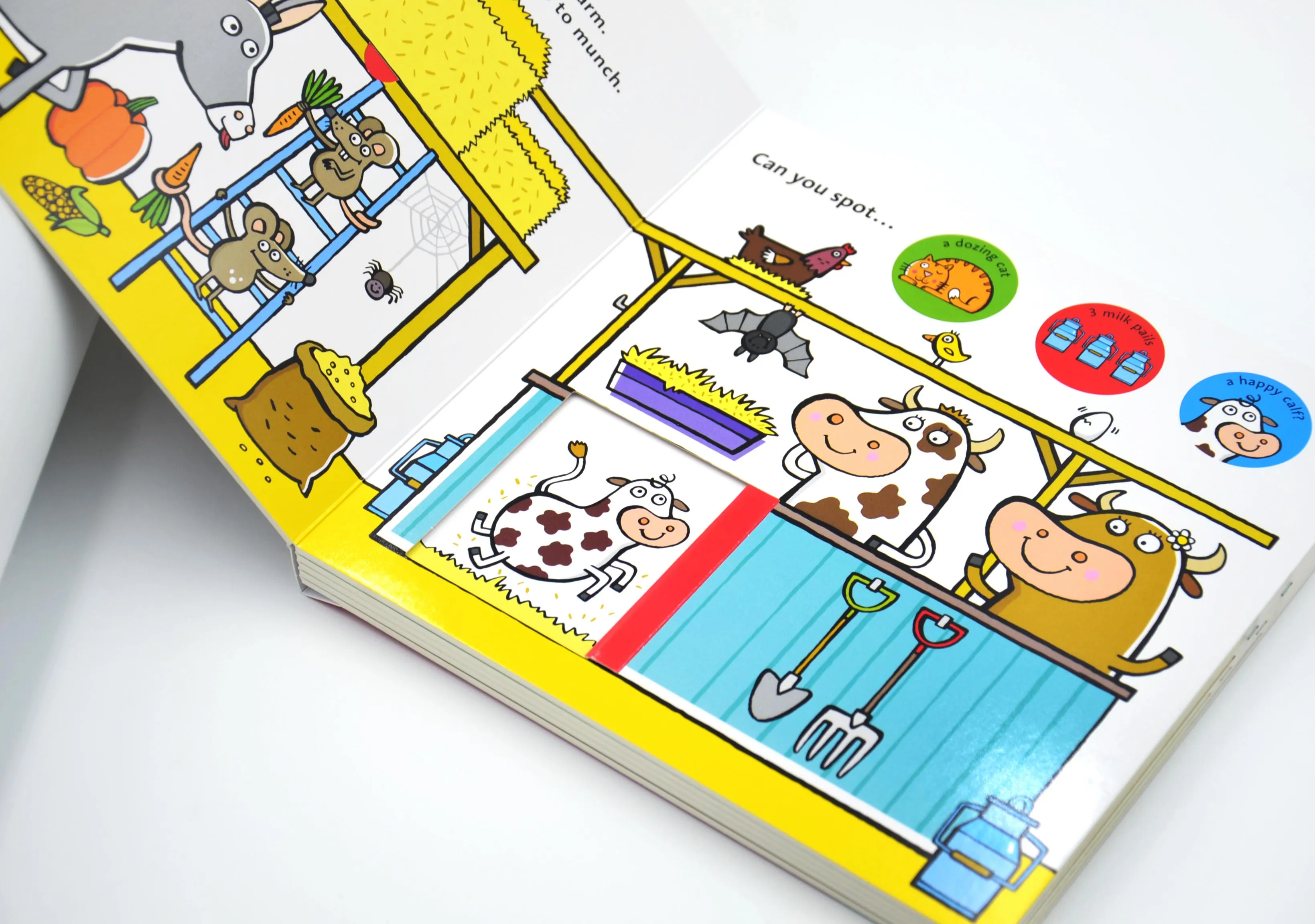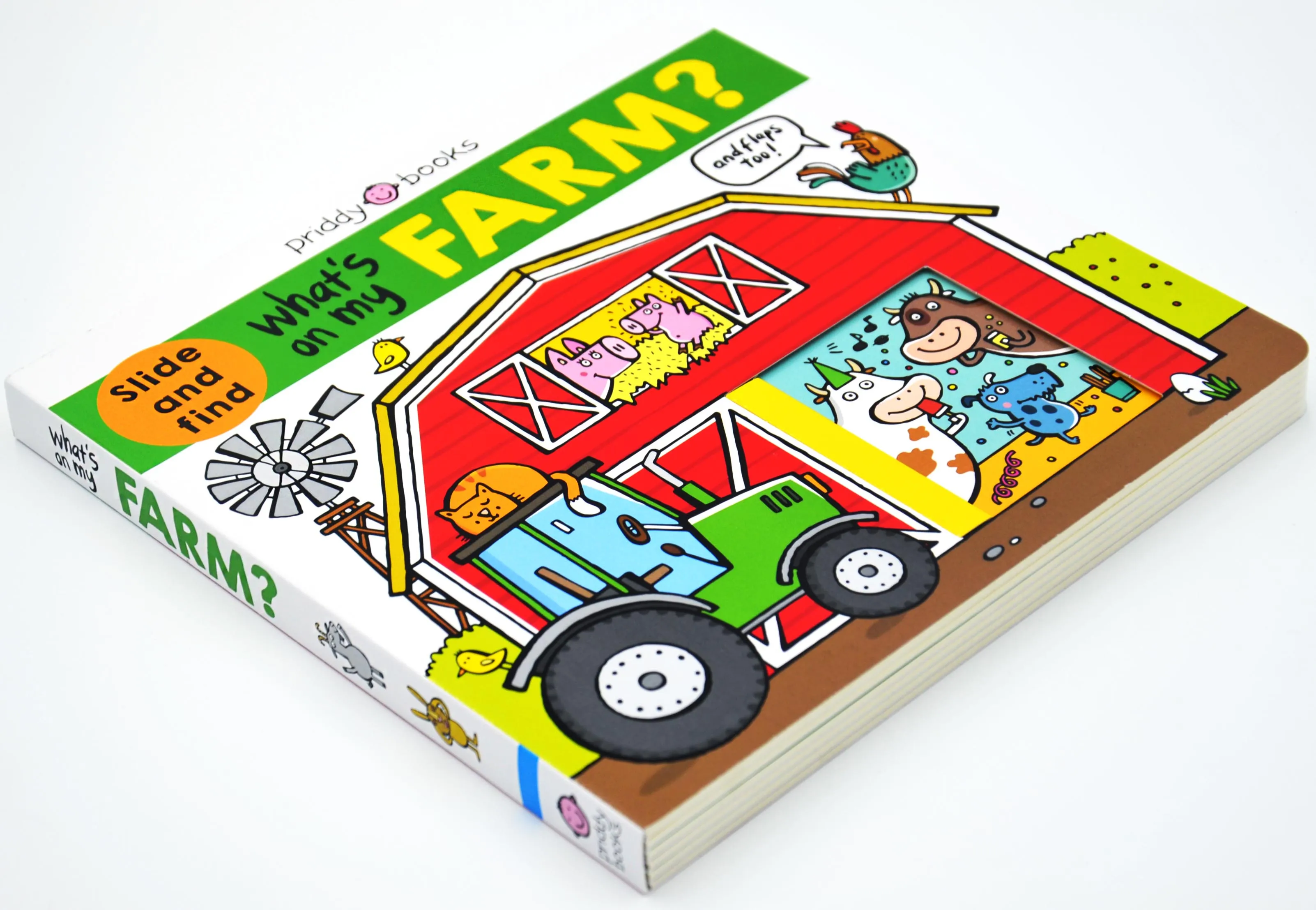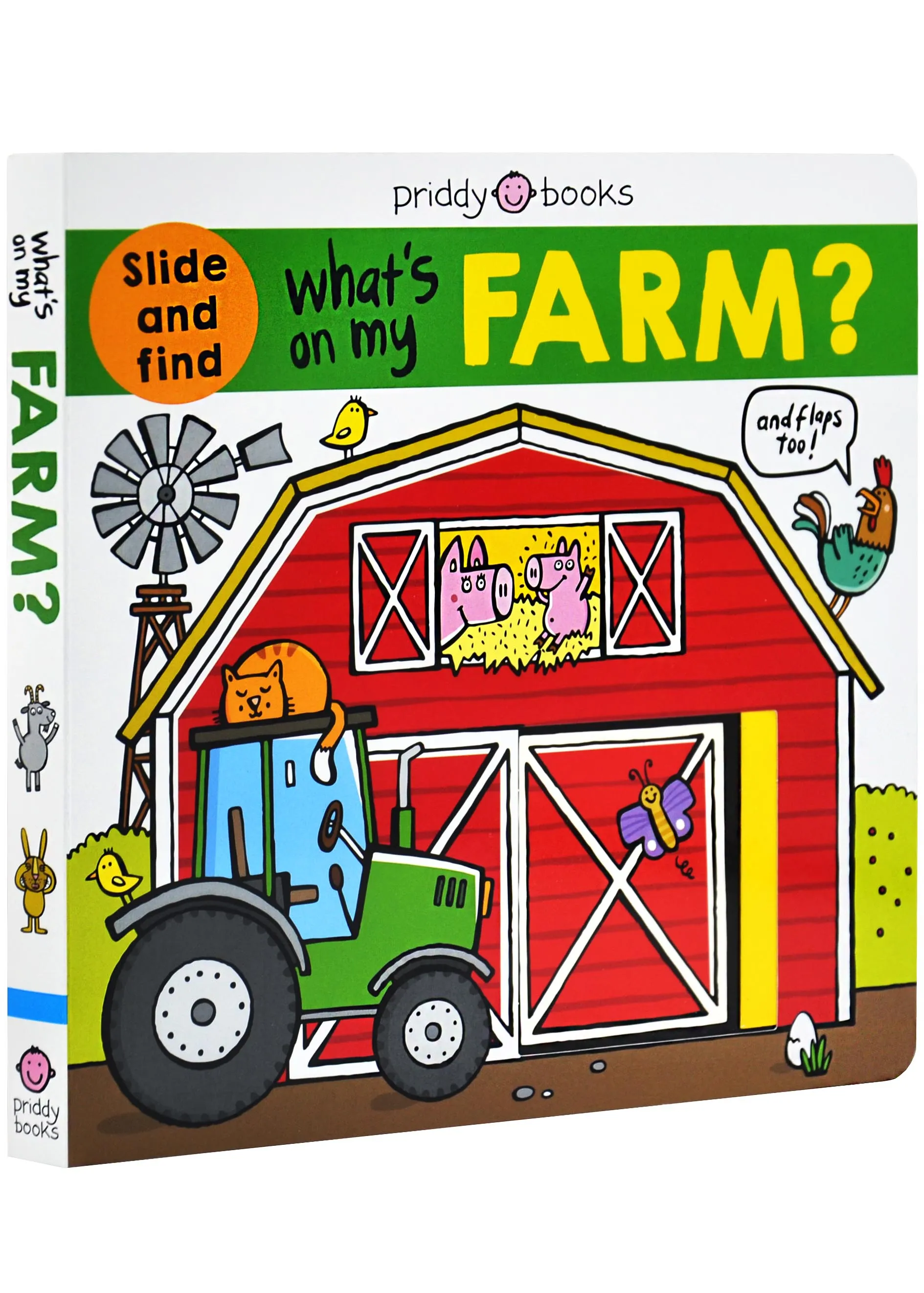 Inside What's on my Farm? young children will discover interesting novelties to lift and slide on every spread. Children will have fun exploring the farm, recognising the animals, and spotting funny things along the way, as they build their matching and problem-solving skills. From the barnyard to the stables and fields, there's lots to search for and find. The chunky mechanisms are fun to use and ideal for little hands.
