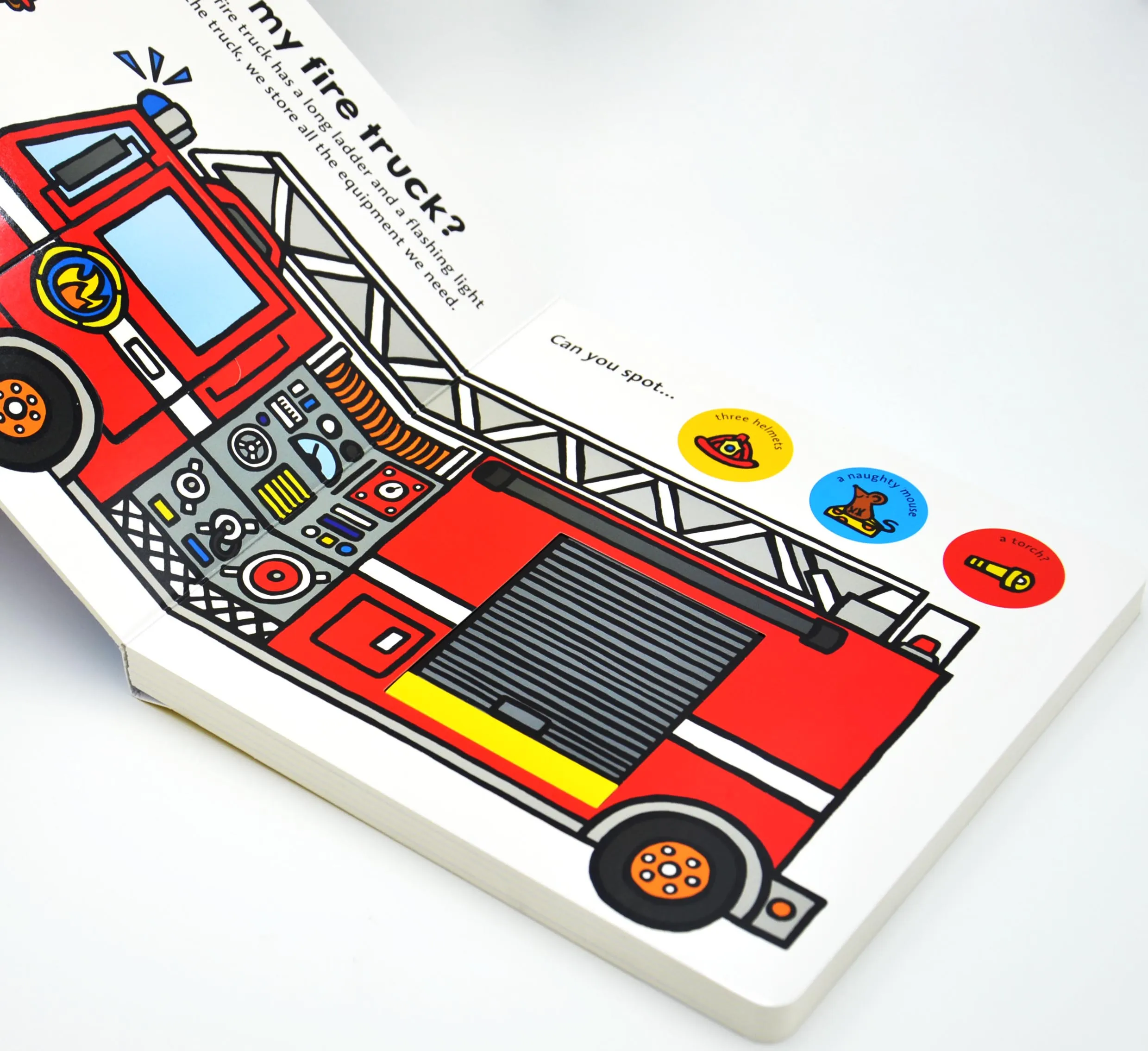 Inside, you’ll find an interesting flap to lift and a slider on every spread. Children will have fun finding out what’s in each different truck and spotting funny things along the way as they build their picture recognition and problem solving skills.