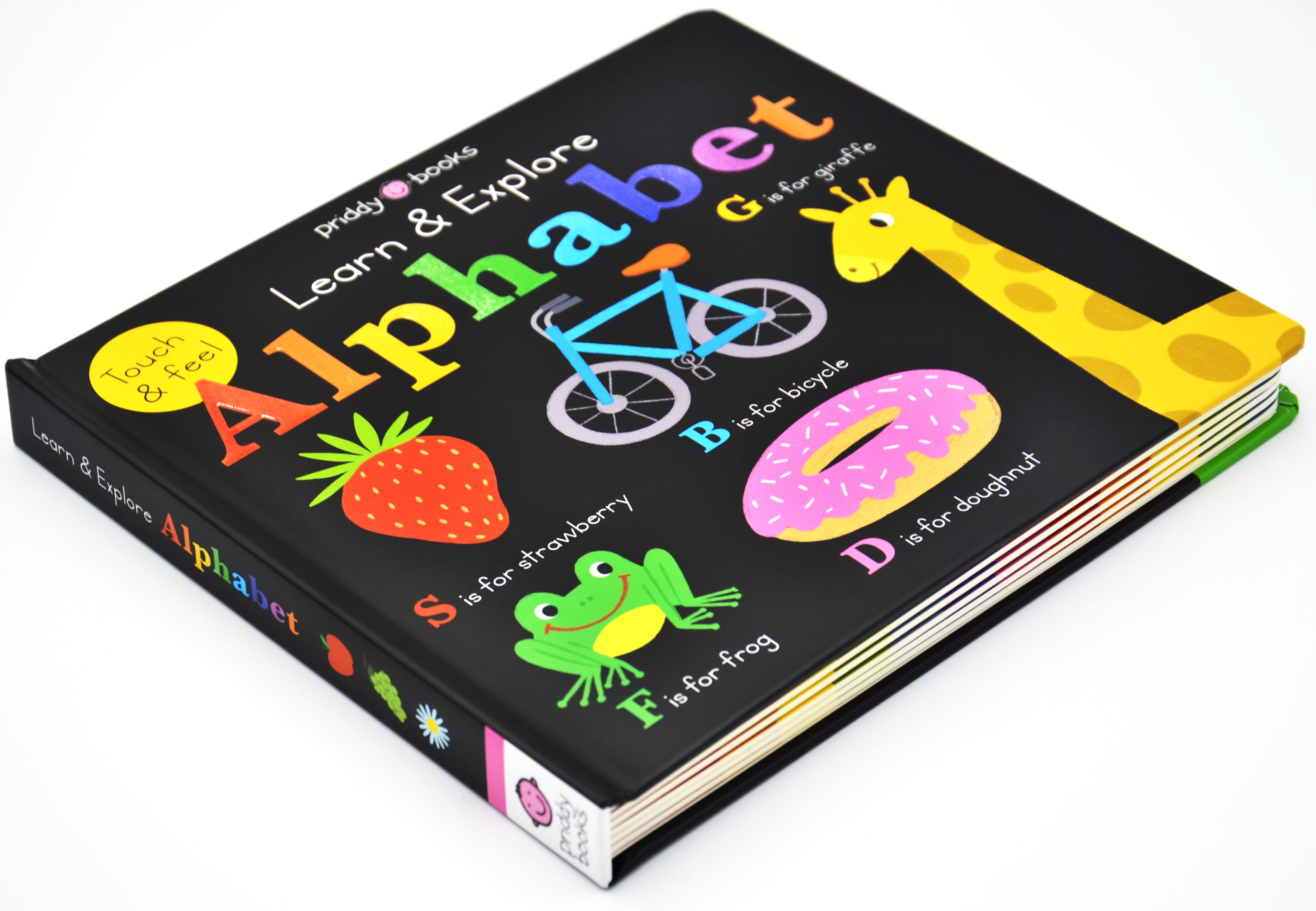 Learn & Explore Alphabet is a premium first-learning book from Priddy Books that introduces babies to their ABC, using touch-and-feel novelties to stimulate their senses on every page.Young children will love discovering the letters of the alphabet with this engaging touch-and-feel book.Each page features a unique tactile area, from fur and felt to foil and much more! The tactile elements allow children to explore with their hands while learning first words.What's more, the charming illustrations and clear, simple labels make this stimulating board book an essential title for any first-learning library.With vibrant pictures and text against a strong black cover, this book has real shelf appeal. The soft matte finish adds to the sleek feel and makes for the perfect gift to share with young children.