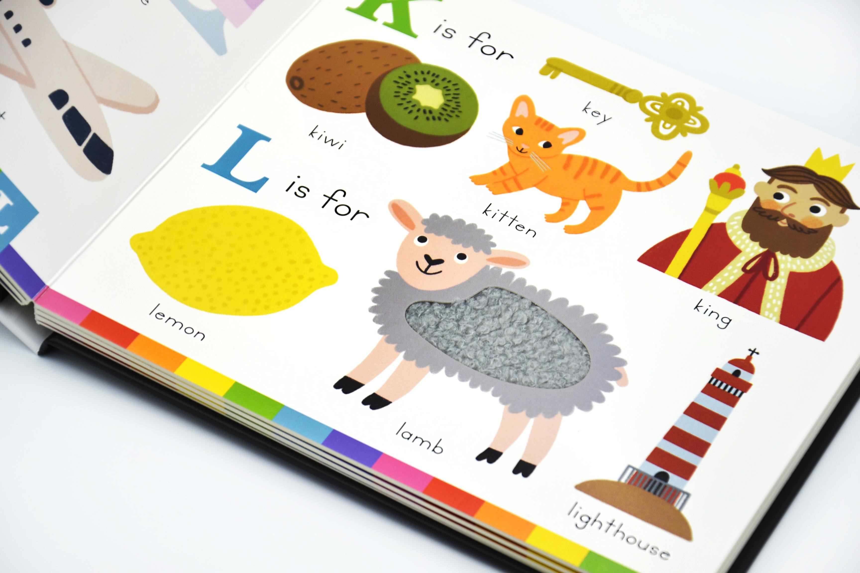 Маленькі діти із задоволенням відкриватимуть для себе літери алфавіту в цій інтерактивній книзі. Кожна сторінка містить унікальні текстурні елементи – від м’якого хутра та фетру до блискучої фольги та багато іншого! Завдяки цим тактильним зонам малюки зможуть досліджувати світ на дотик, водночас вивчаючи перші слова.