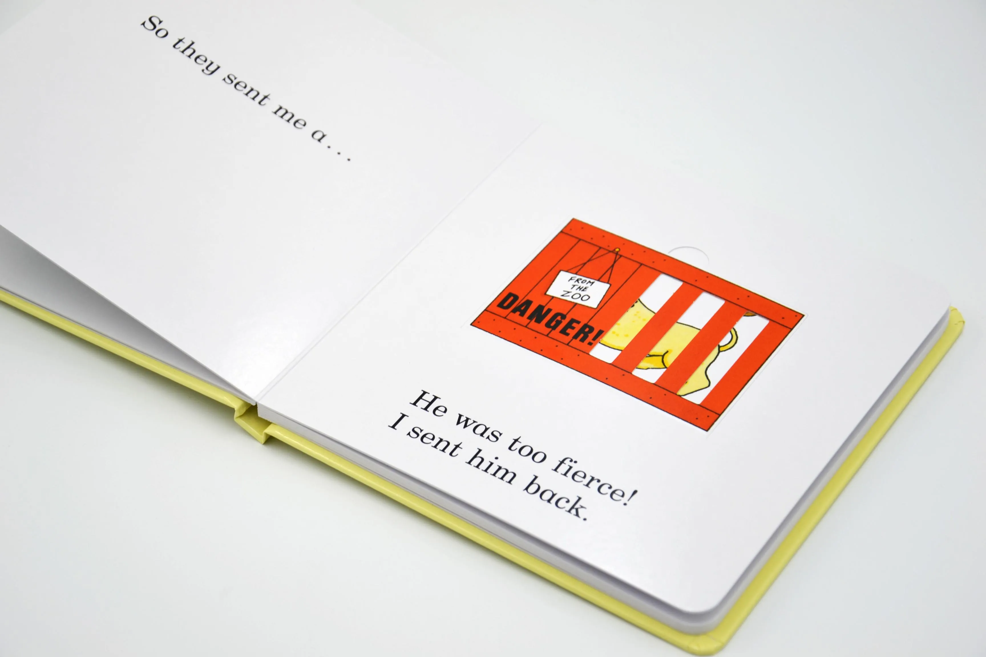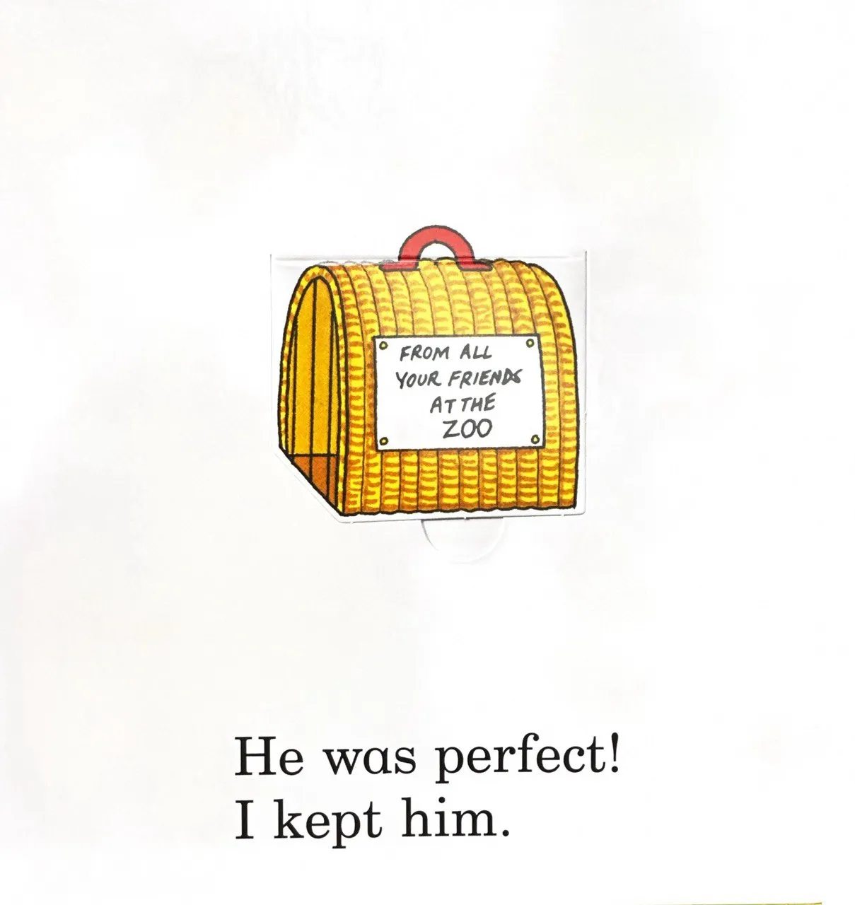 Маленькі читачі з радістю відкриватимуть віконця, щоб дізнатися, яких тварин надіслав зоопарк – мавпу, лева, навіть слона! Але чи знайдуть вони ідеального улюбленця?