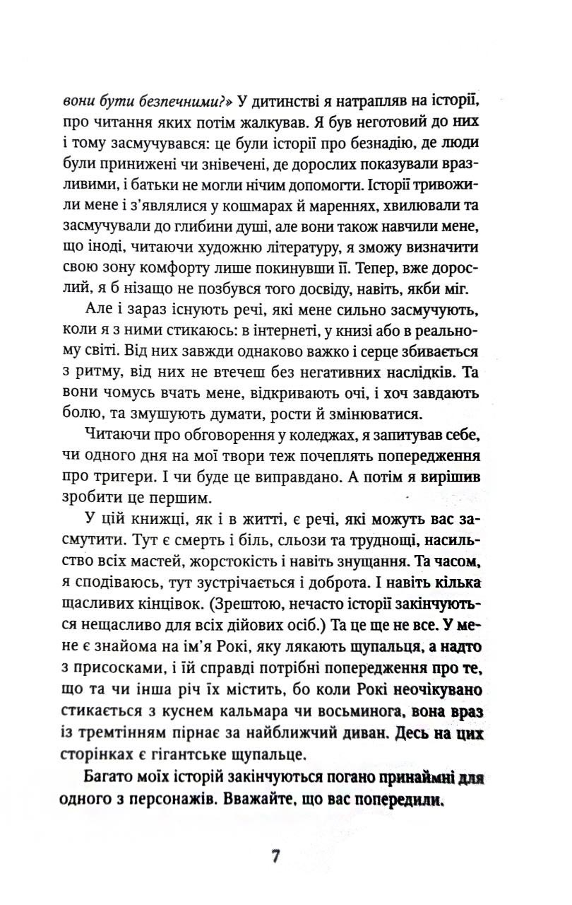 «Обережно, тригери!» — нова книга відомого британського письменника Ґеймана Ніла, яка поєднує в собі вражаючу колекцію коротких історій, сповнених таємничості, фентезі та гостросюжетних поворотів. Цей збірник є справжнім подарунком для поціновувачів магічного реалізму та літератури жанру темного фентезі. Автор знову демонструє свій неперевершений талант сюжетної побудови та емоційної глибини, занурюючи читачів у химерні, іноді навіть тривожні всесвіти, які викликають роздуми.
