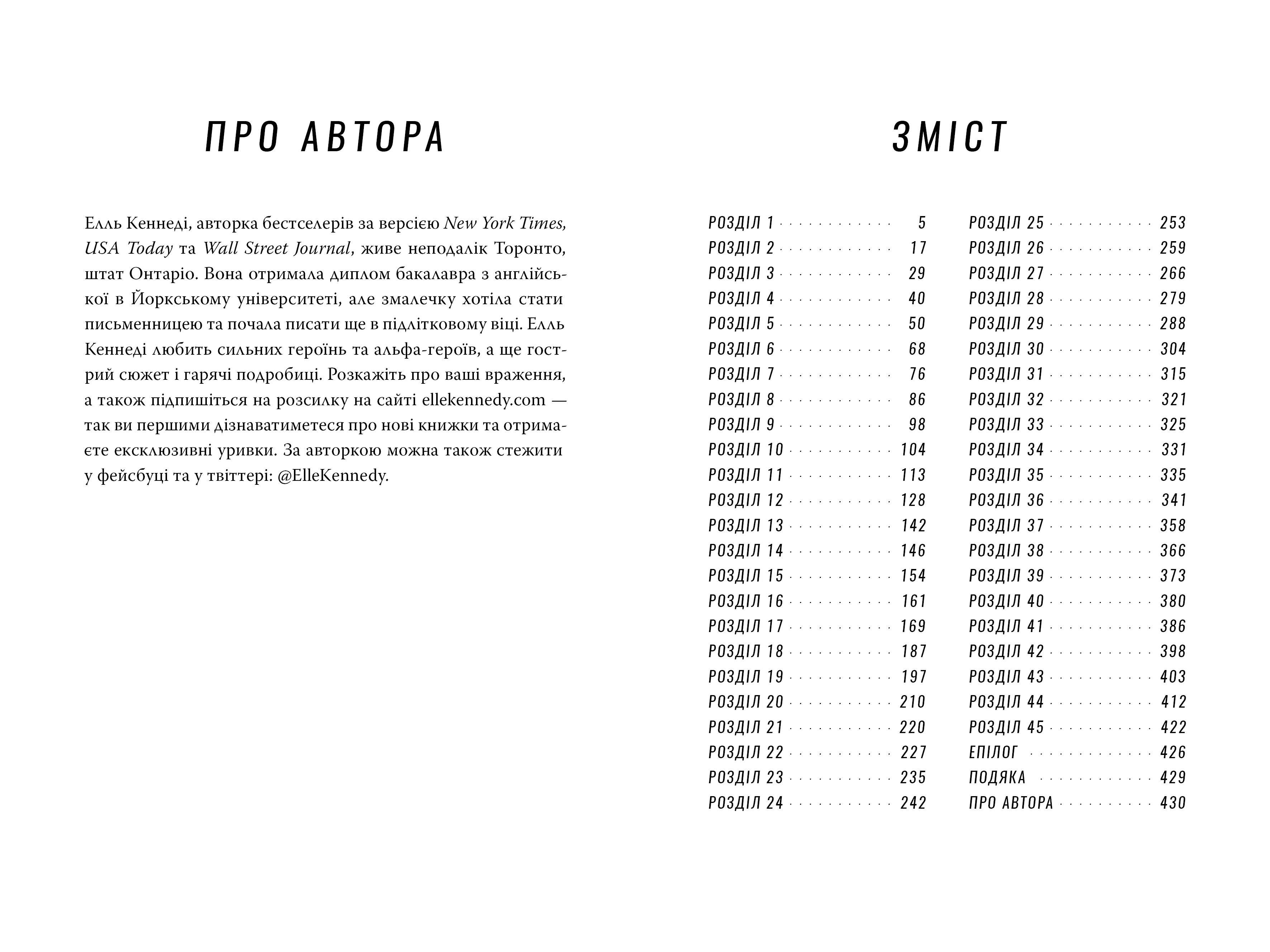 Елль Кеннеді — відома авторка сучасної романтичної прози. Її книги вирізняються щирістю, динамічним сюжетом та яскравими персонажами. Вона здобула популярність завдяки таким творам, як серія "Off-Campus", частиною якої є "Угода".