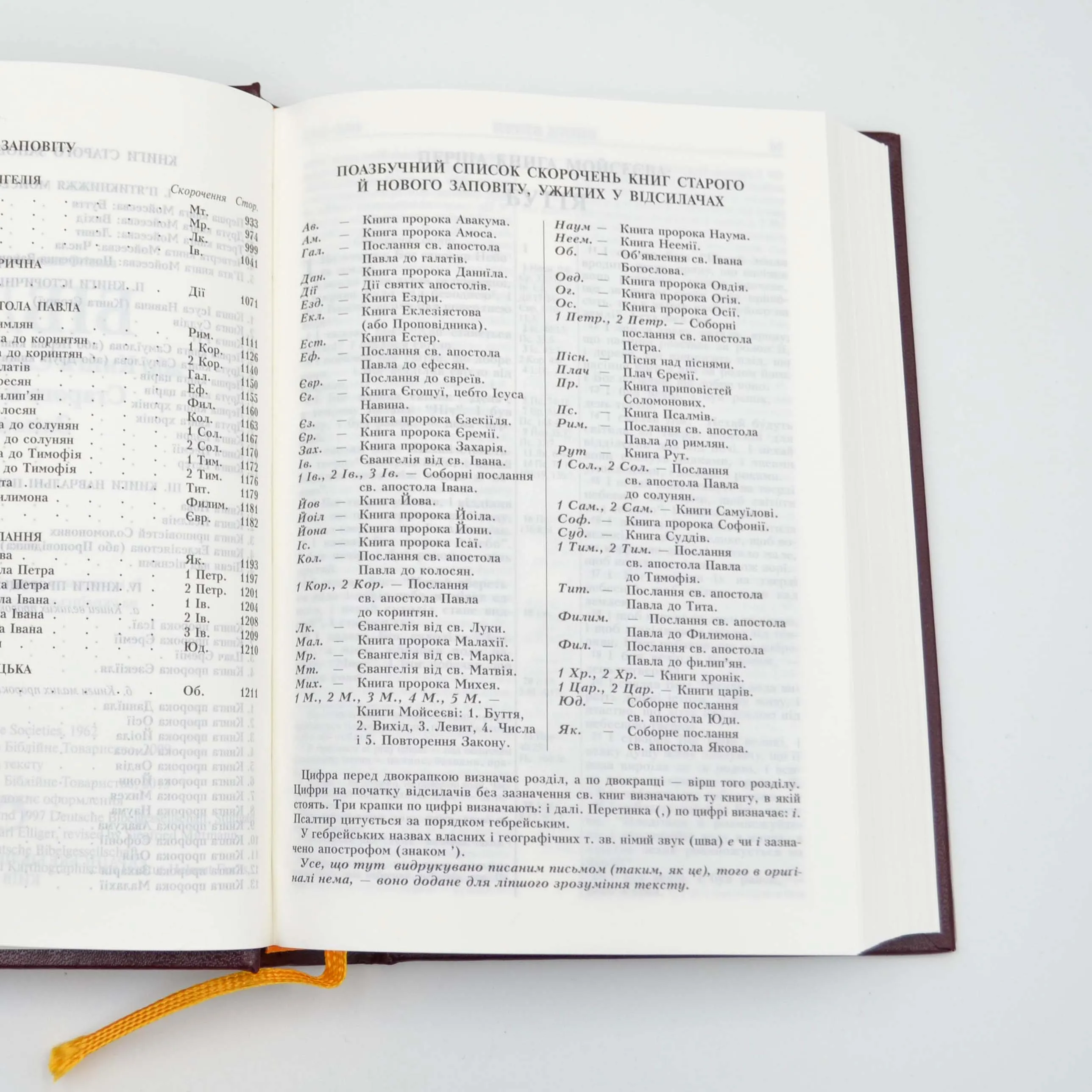 Біблія - найсуттєвіша книга в житті кожної людини. На нашому сайті ви знайдете різноманітні варіанти Біблій: різні переклади, розміри та формати. Для вашої зручності ми пропонуємо Біблії з м'якою або твердою палітуркою, замкнені або без замка. В нашому асортименті також є подарункові варіанти Біблій українською мовою. Це Святе Письмо, яке можна подарувати близьким людям, що стане для них джерелом душевного спокою та любові.Біблія або Книги Святого Письма Старого й Нового Заповіту (українською мовою з давньоєврейської та давньогрецької мов). Перекладач: Іван Огієнко. Текст у дві колонки з паралельними місцями, виноски-пояснення внизу сторінки.