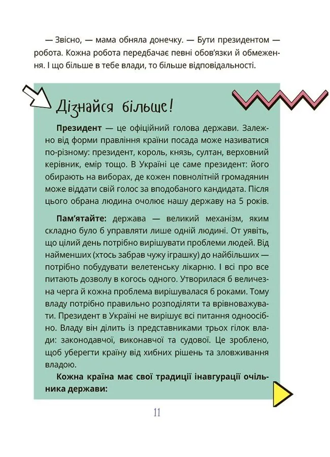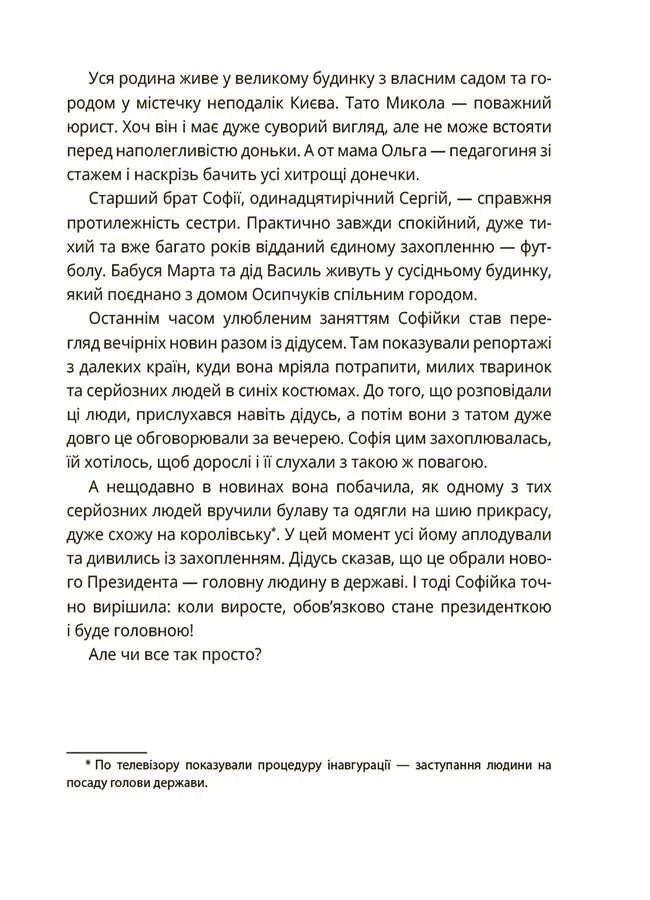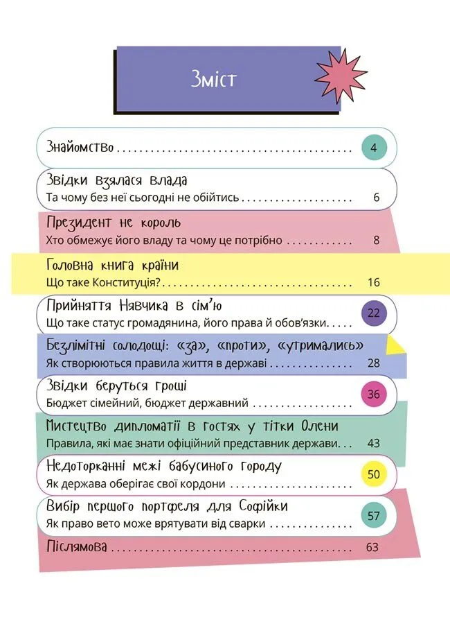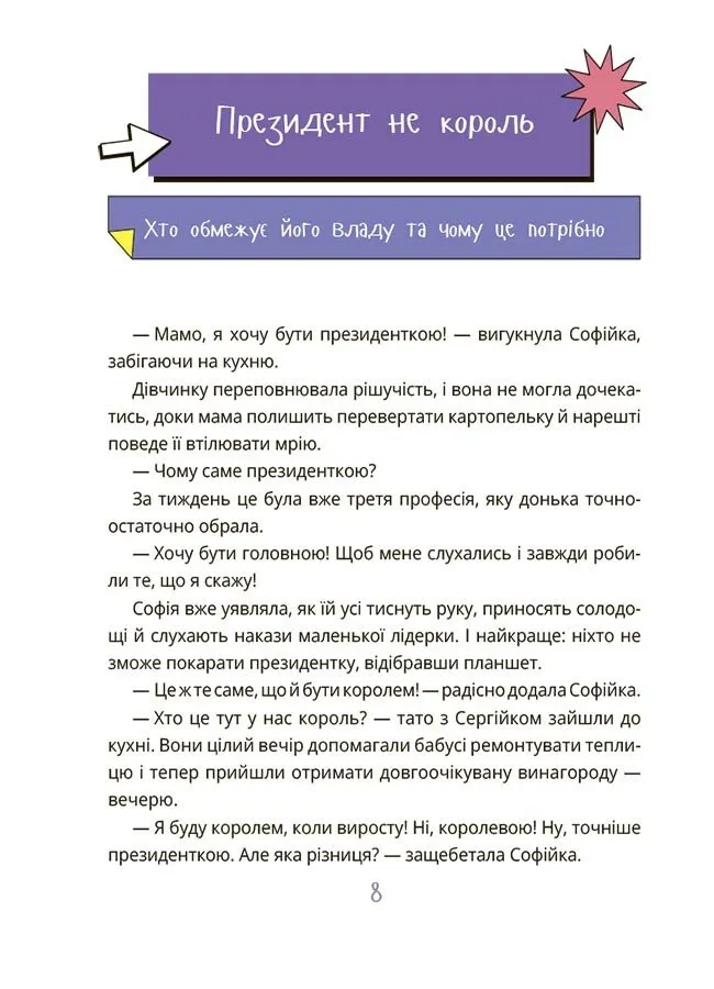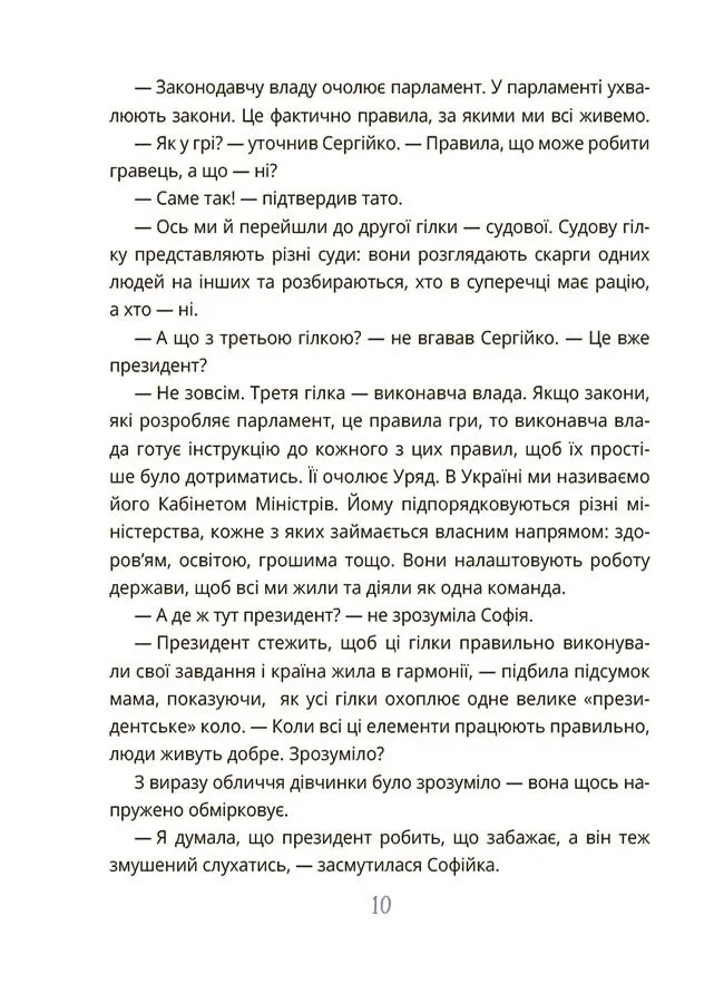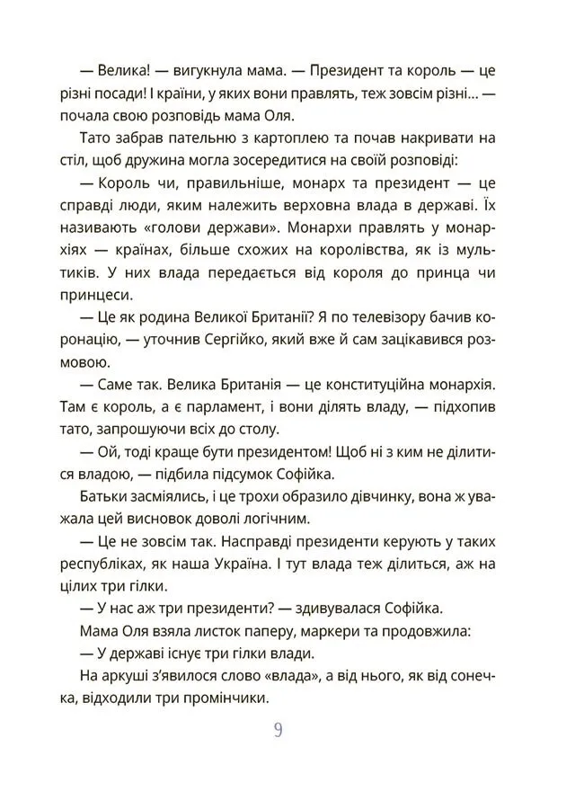 За допомогою цієї книги дитина навчиться критично мислити, зрозуміє основи державного управління і дізнається, що кожен громадянин може змінювати свою країну на краще.