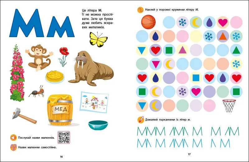 Методика книги побудована таким чином, що дитина вчиться поступово: від простого до складного. Веселі завдання роблять навчання захопливим процесом. Це чудовий вибір для першого знайомства з буквами.
