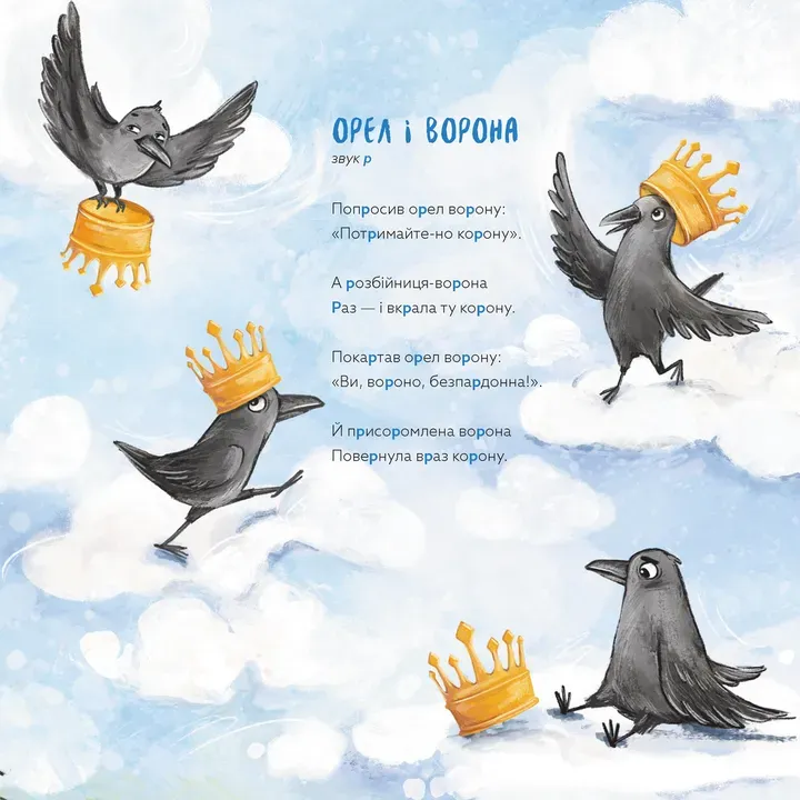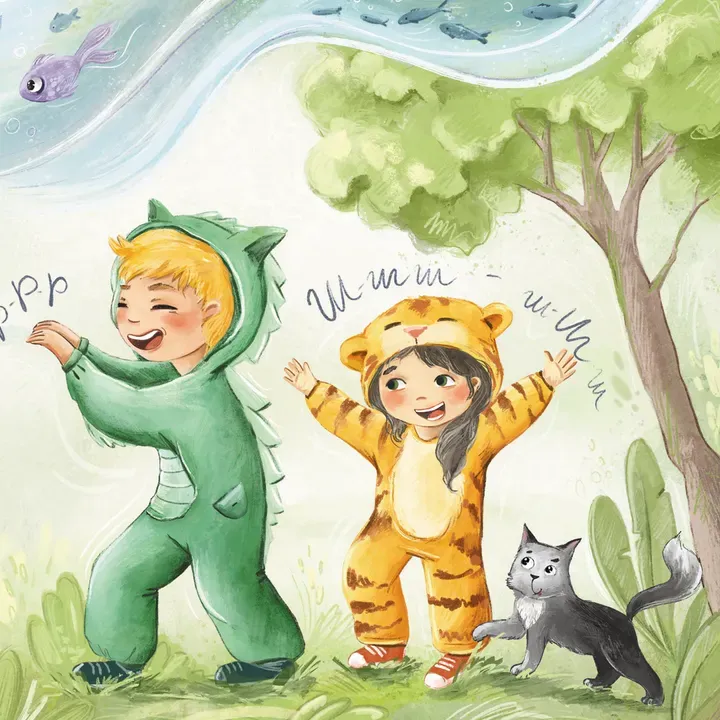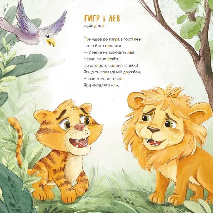 Маленькі читачі зможуть потренуватися рикати, як тигреня, пошипіти з кішкою та правильно освоїти вимову непростих звуків.