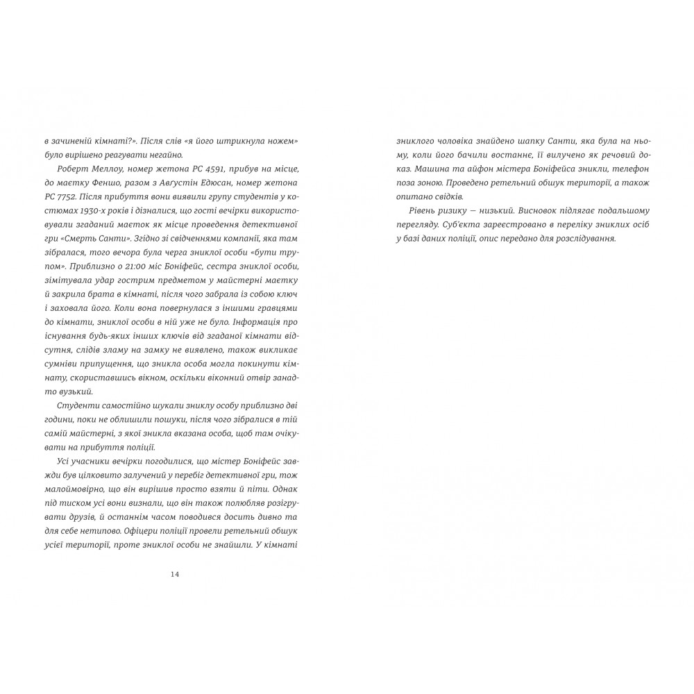 Під час навчання в коледжі вісім друзів створили Спільноту вбивчих маскарадів. Таємниці, які вони розгадували, були жахливими та блискуче продуманими, але головне — вони були вигаданими. До останнього різдвяного маскараду, на якому зник один із учасників товариства… Дванадцять років по тому Спільнота вбивчих маскарадів збирається знову в маєтку Снеллбронх. І серед них є Чарлі — актриса, що бореться за життя. Чарлі завжди була на периферії цієї високопоставленої групи, але вирішила возз’єднатися зі своїми друзями за обіцянки допомоги в кар’єрі. Після прибуття кожен отримує нову особистість, а сам сетинг — колядка «Дванадцять днів Різдва»: леді Партридж, містер Ґолд, Лорд Ліпворт, доктор Свон і міс Коллі. Гра починається, і все наче так само, як і в старі часи. До наступного ранку, коли леді Партридж знайшли мертвою. Повішеною. На груші. Чи дозволять проникливе око Чарлі та її статус аутсайдерки викрити вбивцю? Чи її спіткатиме така ж доля? І чи вбивця серед них? Аби виграти гру й дожити до різдвяного ранку, їм доведеться разом відкрити правду про себе, те, ким вони стали, і те, що насправді сталося тієї фатальної ночі дванадцять років тому.