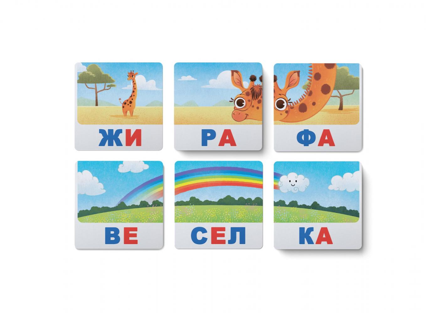 Набір «Розумні картки. Читаємо по складах» включає 30 двосторонніх мнемокарток (25 слів), які допоможуть малюкові навчитися читати по складах. Ці картки - пазли. Дитині необхідно знайти дві або три частини однієї картинки, з'єднати їх, а потім прочитати складене слово.В ігровій формі малюк навчиться візуалізувати кожне слово та ділити його на окремі склади, а також складати описову розповідь про зображене на картинці. Заняття з картками сприяють формуванню та вдосконаленню навичок, необхідних для читання та повноцінного розвитку мовлення.Призначено для дітей 4-7 років.