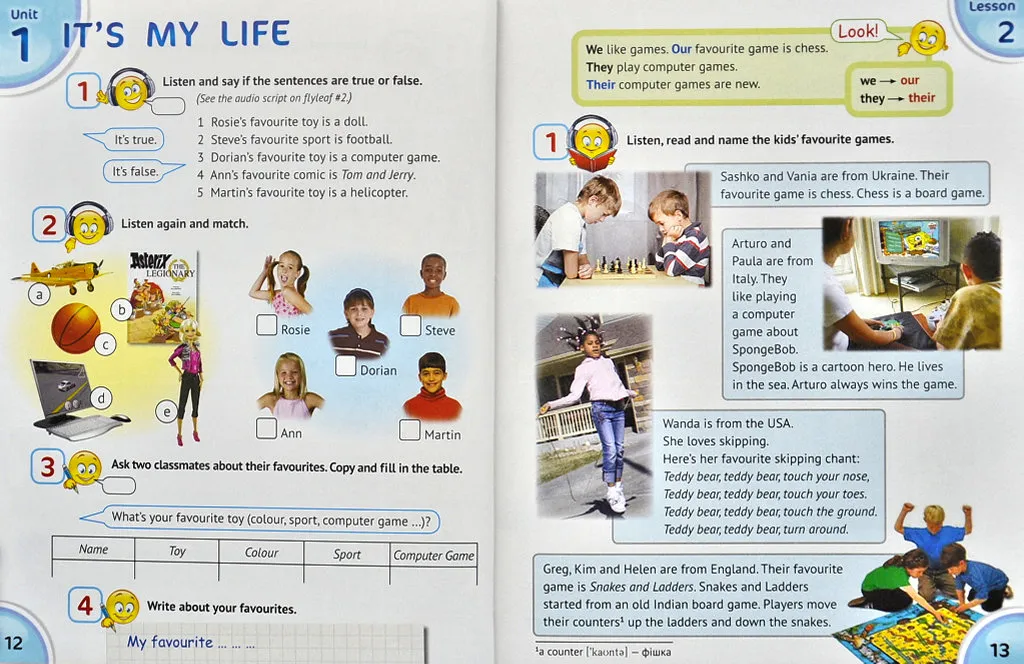 Підручник розроблено згідно з Державним стандартом початкової освіти на основі авторської концепції позитивної мотивації та креативного іншомовного навчання молодших школярів. Книга містить матеріал, передбачений для 4 класу типовими програмами Нової української школи в галузі іншомовної освіти. Діяльнісний підхід та комунікативно-ігрова методика забезпечуються характером завдань підручника з аудіосупроводом та іншими компонентами до нього.