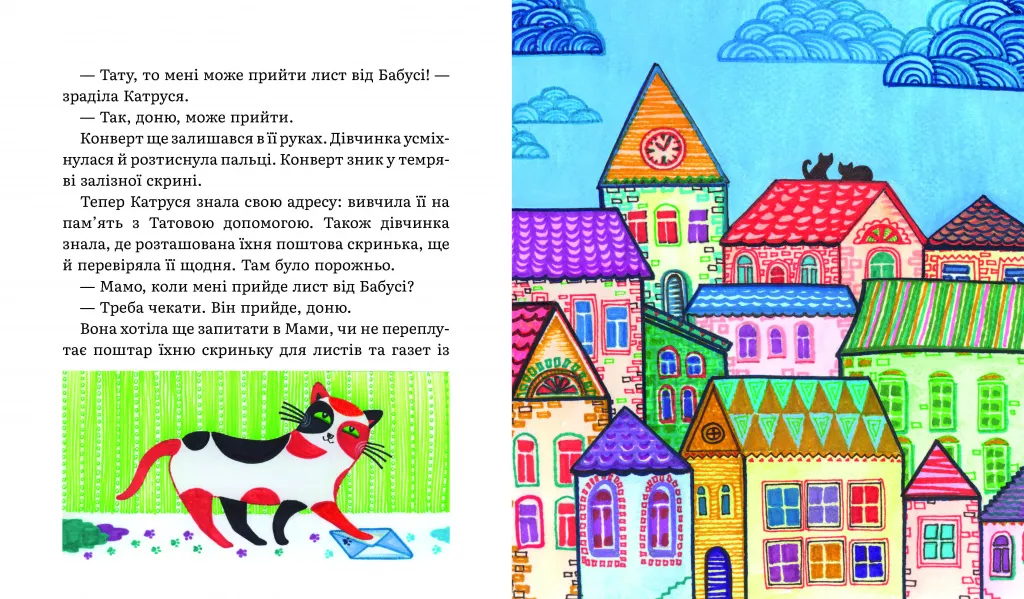 Маленька Катруся ще не вміє писати. Та це не біда, адже листа можна й намалювати! І не лише святому Миколаю, а й Бабусі, що захворіла й не може приїхати на свята. Дівчинка розуміє котячу мову й вірить, що святий Миколай здійснює заповітні бажання, але ще не знає, що листи, надіслані з любов’ю, приховують у собі дивовижну силу... Та скоро Катруся відкриє цю таємницю, адже тепер вона, як доросла, має ключ — ключ від поштової скриньки.
