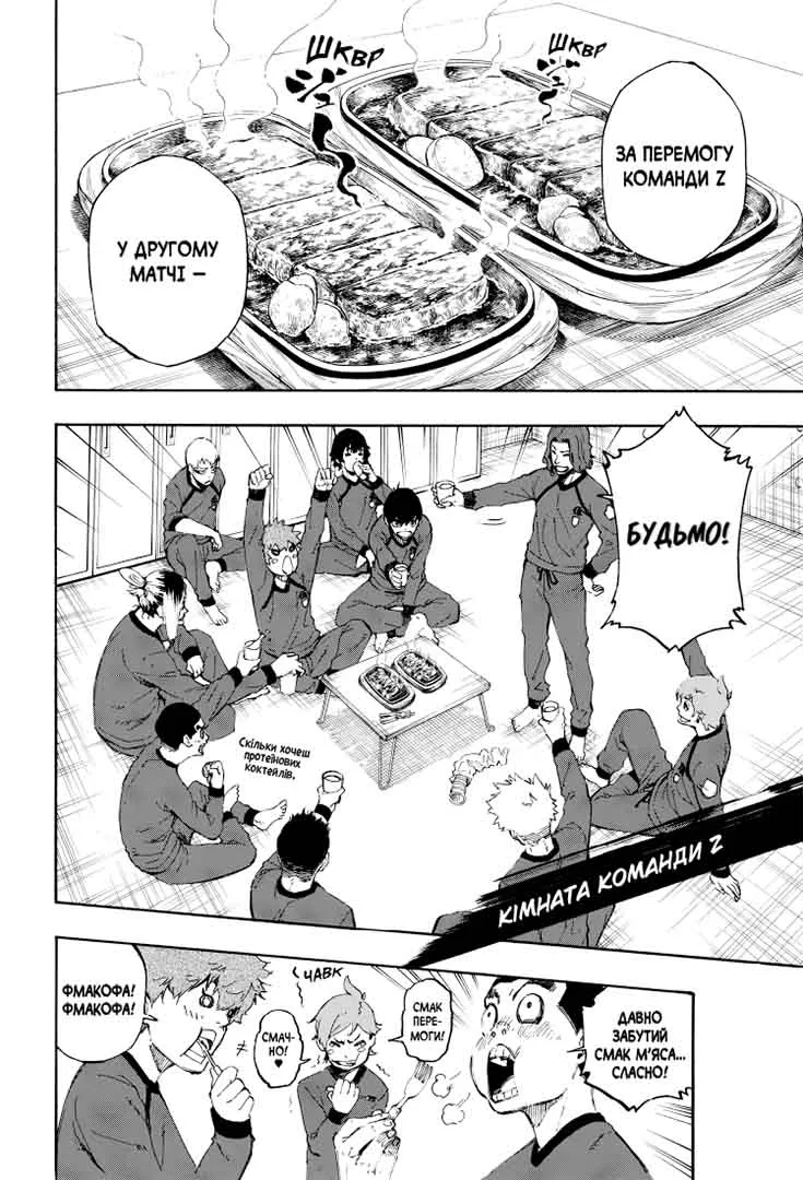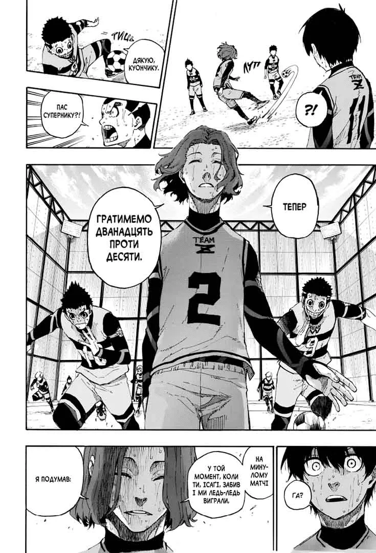 Дві з чотирьох ігор першого відбіркового туру позаду. Команда Йоїчі в запеклій боротьбі перемогла суперників. Гравці в чудовому гуморі та вмотивовані, вони вірять, що й матч із командою W може закінчитися їхньою перемогою. Але Ісаґі не впевнений у собі. Він сумнівається, що в нього все вийде, адже команда W славиться вмінням блискавично атакувати й жорстко пресувати супротивників.
