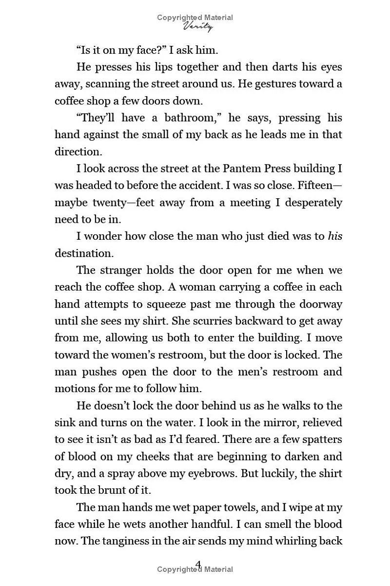 Lowen Ashleigh is a struggling writer on the brink of financial ruin when she accepts the job offer of a lifetime. Jeremy Crawford, husband of bestselling author Verity Crawford, has hired Lowen to complete the remaining books in a successful series his injured wife is unable to finish.