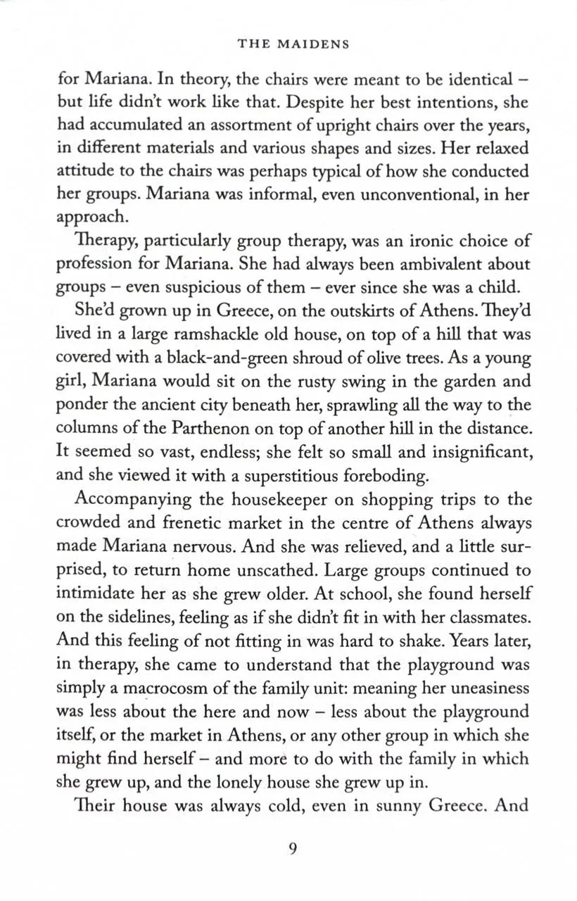 YOU ARE INVITED TO JOIN THE MAIDENS. The Maidens are Cambridge University's most exclusive society, whose members are selected by the charismatic professor of Greek tragedy, Edward Fosca. A SECRETIVE SET OF THE BRIGHTEST, MOST CAPTIVATING STUDENTS. When one of the Maidens is murdered, grieving young therapist Mariana Andros is drawn back to the idyllic campus where she was once herself a student. THE GROUP FROM WHICH EACH VICTIM WILL BE CHOSEN. Because beneath the university's ancient traditions and beauty is a web of secrets, jealousy and lies. And when the killer threatens the person she loves most, Mariana will give anything to stop them - even her own life... From the #1 global bestselling author of The Silent Patient comes a spellbinding tale of psychological suspense, weaving together Greek mythology, murder, and obsession...