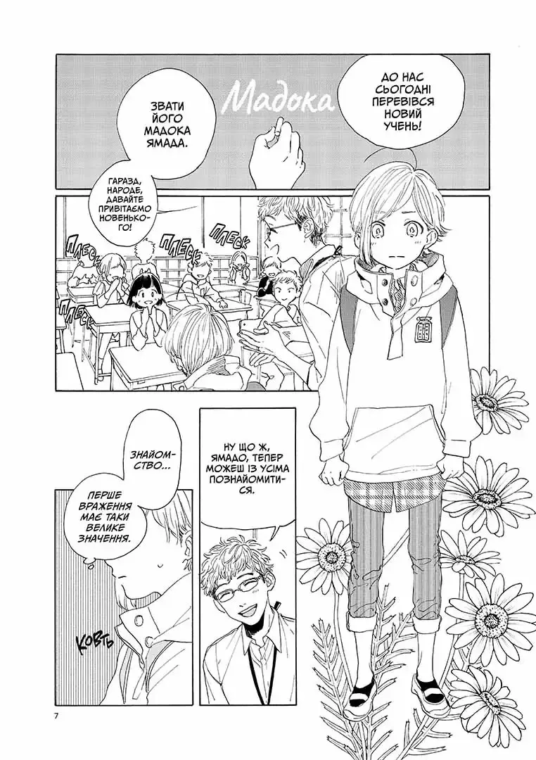 Після переїзду до нового міста та переходу в іншу школу Мадока вирішує поводитися, як прийнято для хлопців, щоб уникнути глузувань. Спочатку йому це непогано вдається, і він знаходить нових друзів. Однак Іцукі Танонака, котрий сидить поруч, здається, на нього зовсім не звертає уваги.