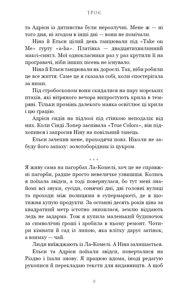"Троє" — це проникливий роман Валері Перрен, що розповідає про трьох друзів, які з дитинства нерозлучні. Їхня дружба проходить через випробування, біль, кохання, зміни та найголовніше — усвідомлення себе.