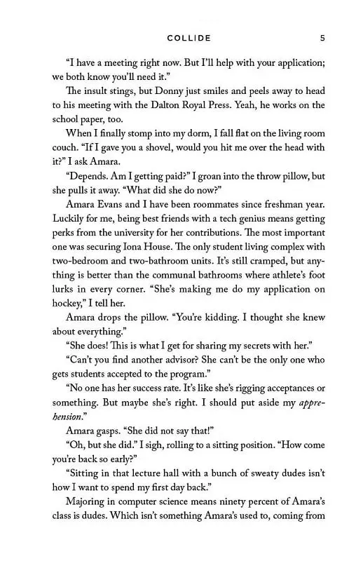 When Summer Preston's professor issues her with an ultimatum, she finds herself on an unexpected collision course with hockey captain, Aiden Crawford.Summer hates everything about hockey, for good reason, but she isn't going to let that stand in the way of her becoming a sports psychologist.Aiden loves being the hockey captain, except when his team's reckless mistakes risk jeopardizing their entire season. When coach puts him forward for a research paper as punishment, he has no choice but to accept.Summer can't stand his blasé approach to life, and Aiden doesn't understand her uptight, scheduled one. They are off to a rocky start, and provoking each other – it turns out – is what they do best.But losing isn't something either of them does well. Maybe there's a way for both of them to win?Now with a never-before-seen bonus scene from Summer and Aiden's love story as well as an extract from the next book in the Off the Ice series. Find out which of your favourite characters from Collide will be featured next!