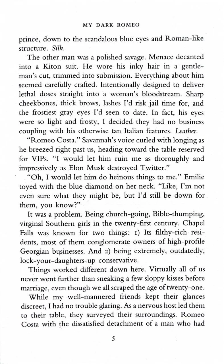 You're my favourite plot twist... It was supposed to be a harmless kiss at a lavish debutante ball. A clandestine moment with a handsome stranger. But unlike his namesake, my Romeo isn't driven by love. He's fueled by revenge. To him, I'm a chess piece. Leverage. His rival's betrothed. To me, he is a man deserving of poison. A dark prince I refuse to marry. He thinks I'll accept my fate. Well, I plan to rewrite it. And in my story, Juliet doesn't die. But Romeo? He perishes. Perfect for fans of Lauren Asher and Ana Huang, My Dark Romeo is darkly funny, completely outrageous and thoroughly addictive. Now over 100 million views on TikTok for #mydarkromeo!